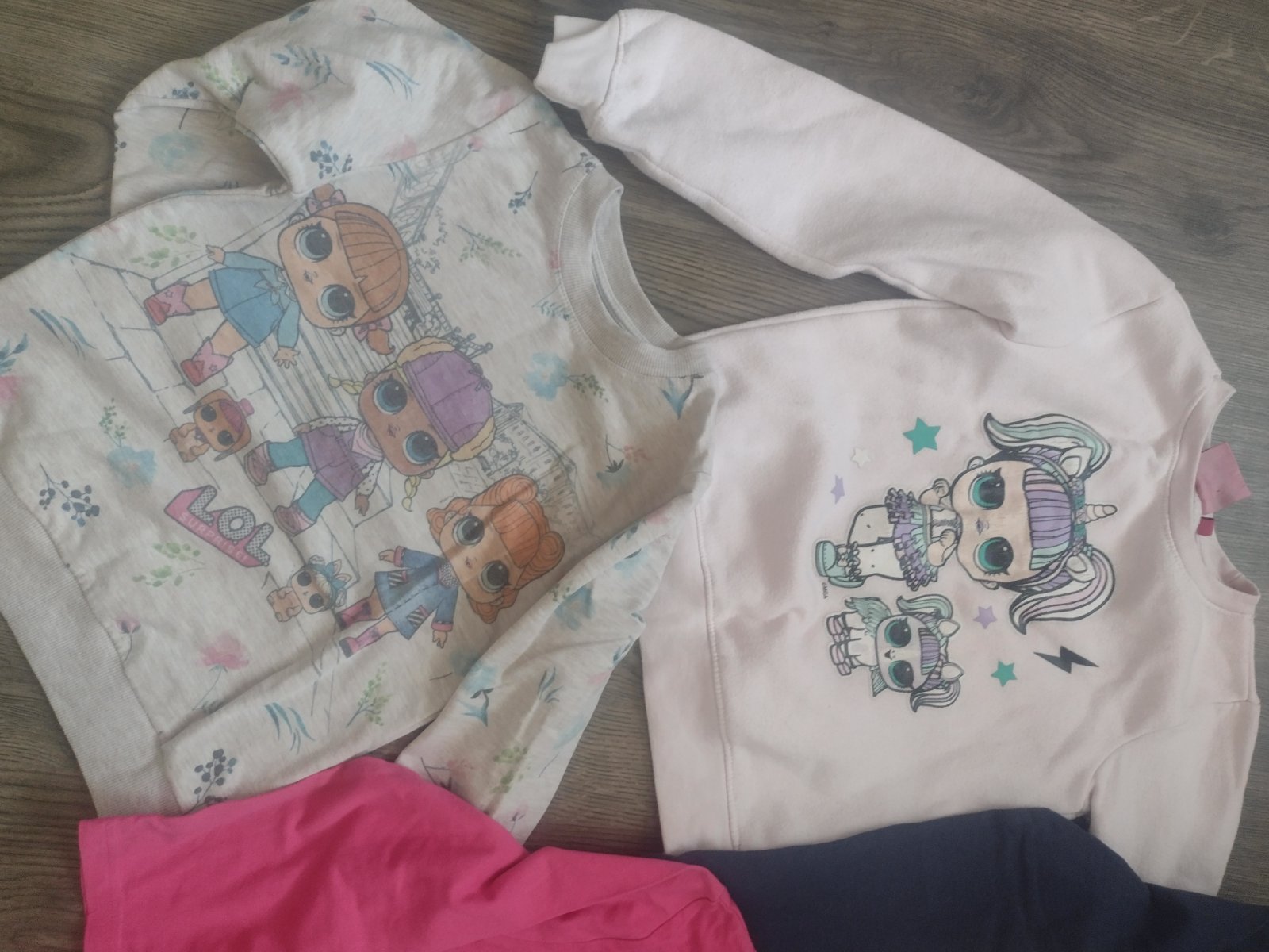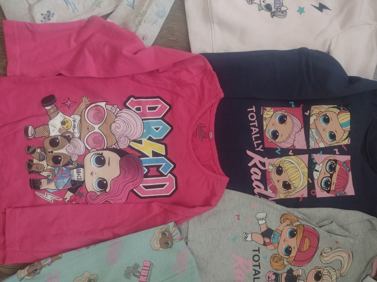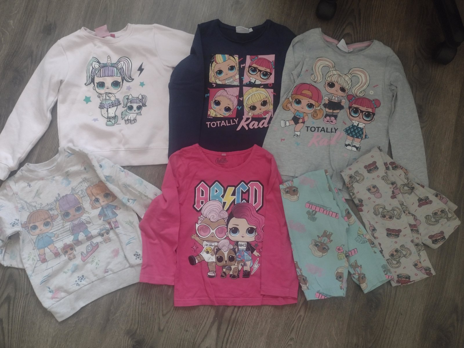 Predám L.O.L. vecičky - 2x pulóvre, 3x tričká s dlhým rukávom, 2x legíny a 2x šaty, 1x pyžamový overal, všetko spolu. Veľkosť väčšina 128, ružové tričko 122, ružový pulóver 122/128 a druhý pulóver píše 116, šaty 116 a 134. Plus k tomu dám Lol ponožky, nákrčník a čiapku (trošku je vyblednutá) + nafukovacie kreslo- asi niekde bude malá dierka lebo pomaličky sa sfukuje, ale určite sa dá zalepiť, + na oslavu papierové poháriky a tanieriky s motívom LOL. Spolu 20€