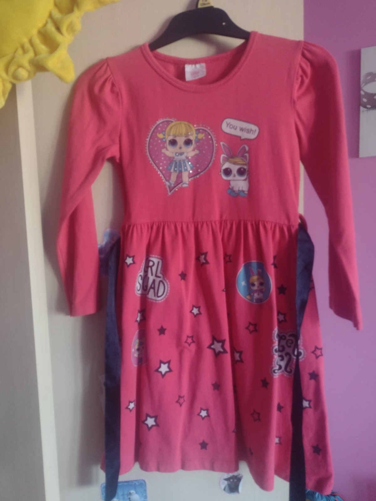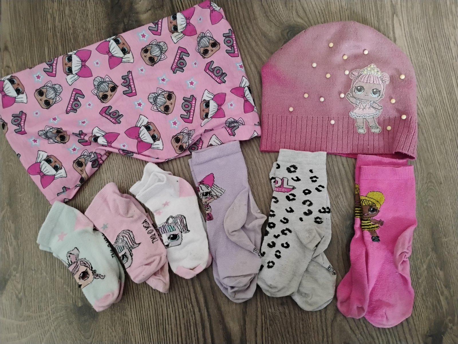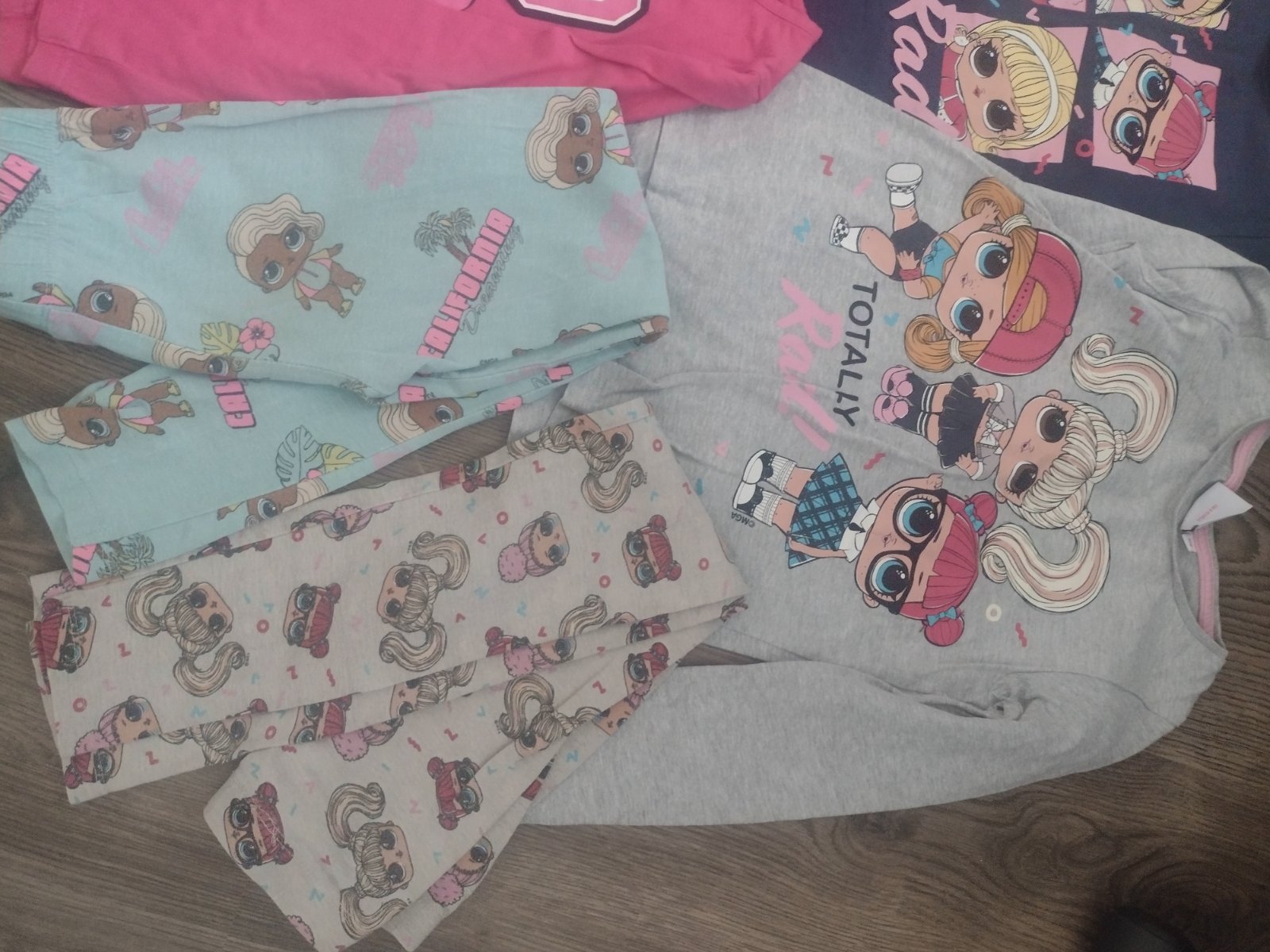 Predám L.O.L. vecičky - 2x pulóvre, 3x tričká s dlhým rukávom, 2x legíny a 2x šaty, 1x pyžamový overal, všetko spolu. Veľkosť väčšina 128, ružové tričko 122, ružový pulóver 122/128 a druhý pulóver píše 116, šaty 116 a 134. Plus k tomu dám Lol ponožky, nákrčník a čiapku (trošku je vyblednutá) + nafukovacie kreslo- asi niekde bude malá dierka lebo pomaličky sa sfukuje, ale určite sa dá zalepiť, + na oslavu papierové poháriky a tanieriky s motívom LOL. Spolu 20€