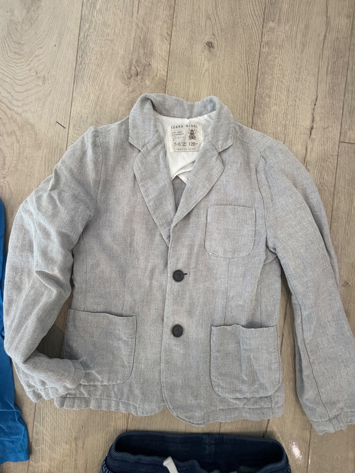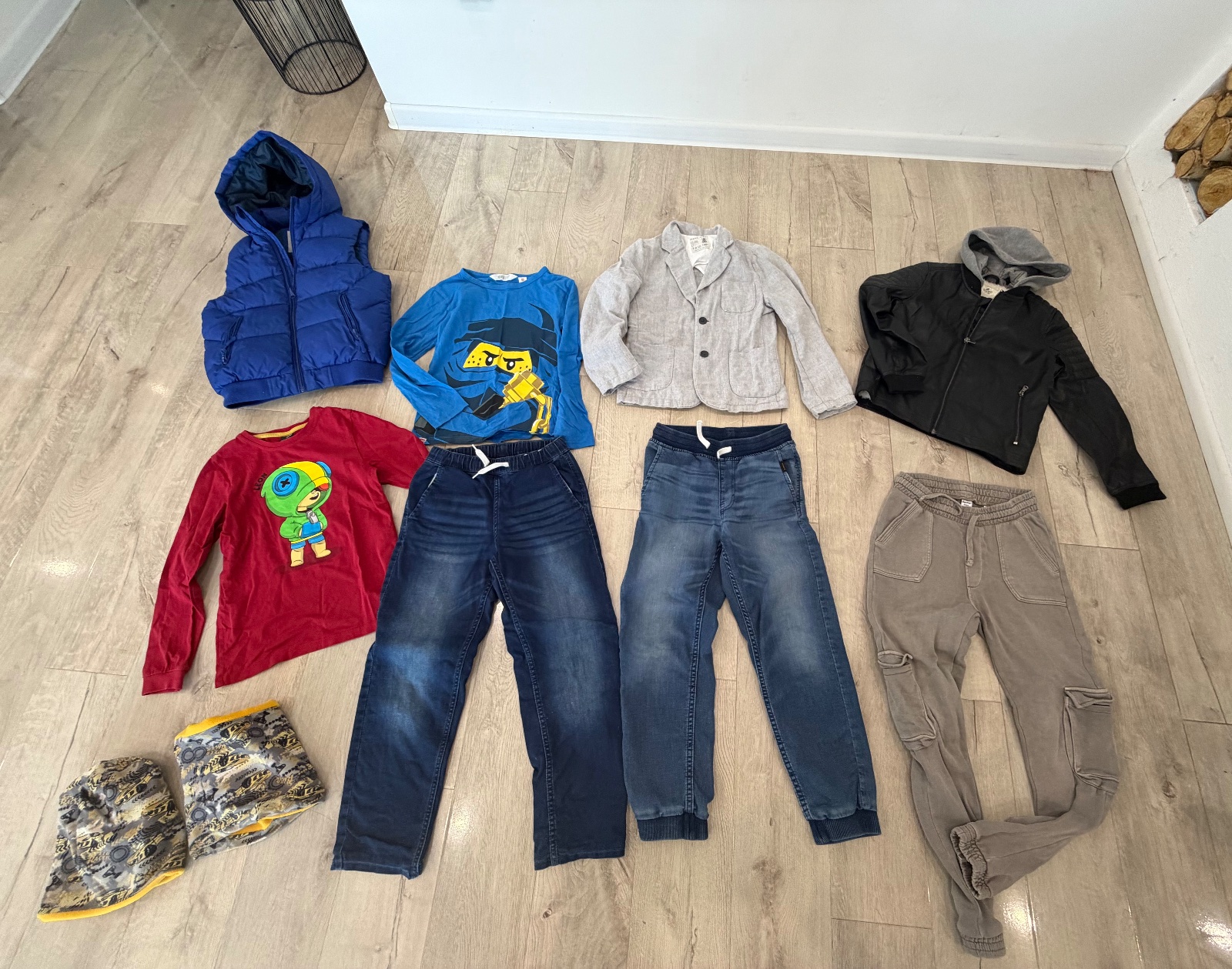 vacsina je 128 nosene, zachovale, v dobrom stave. Nohavice, teplakove nohavice, spodne nohavice, tielka, sveter.