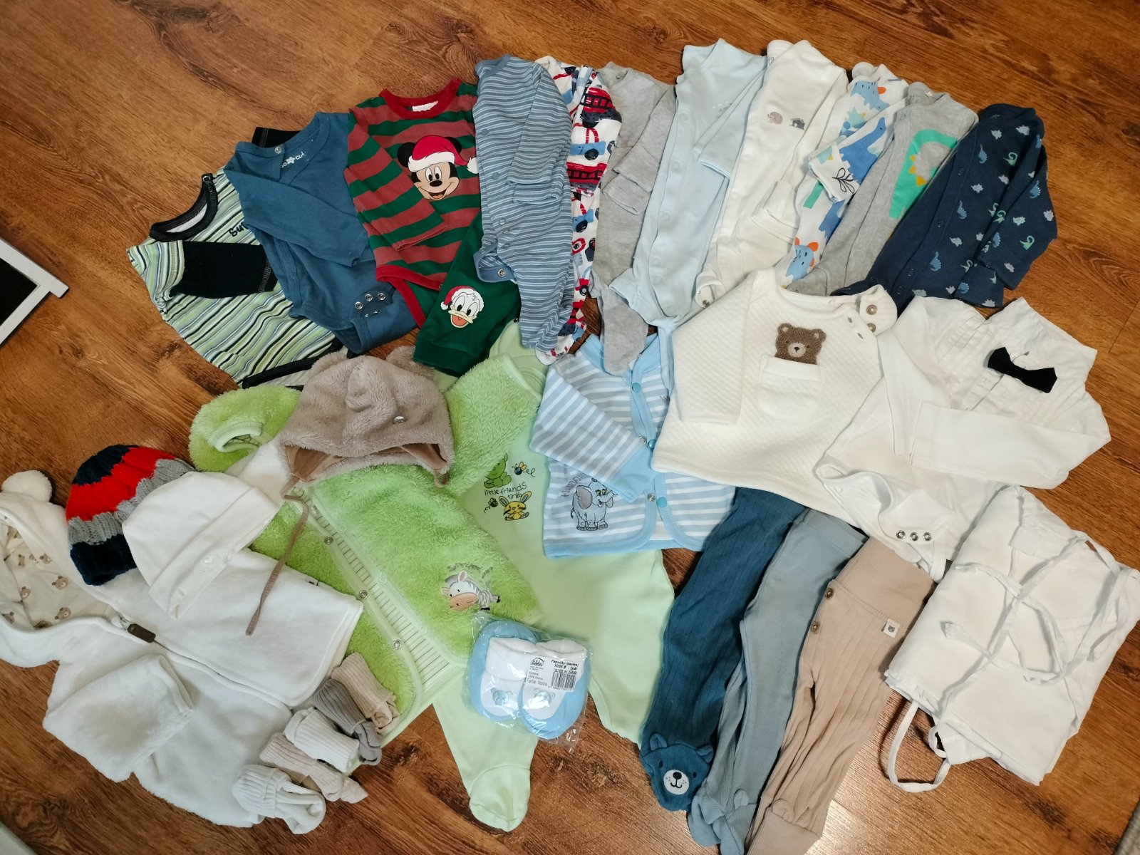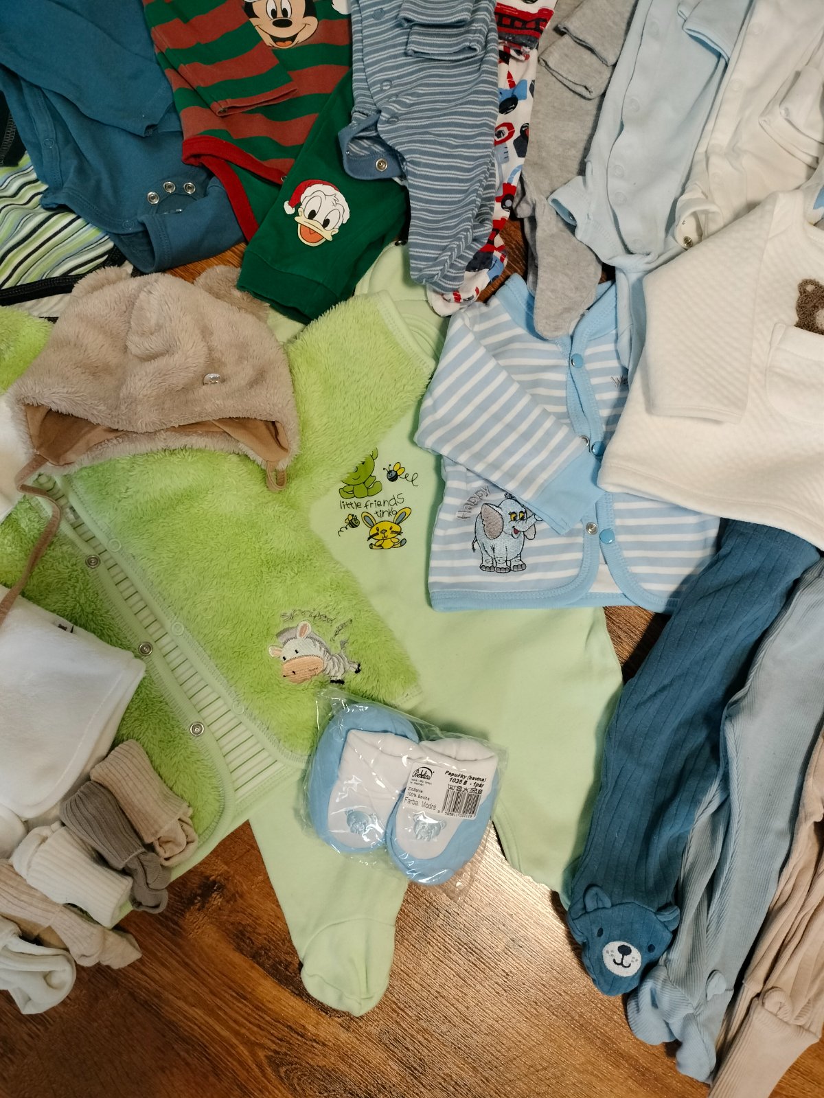 Balík detského oblečenia, veľkosť 56,62,chlapec, ale neutrálne farby kľudne aj pre dievča niečo, cely balík 25 eur, ale je tam toho strašne veľa nefotim, proste komplety, svetrík, čiapky, rukavičky...