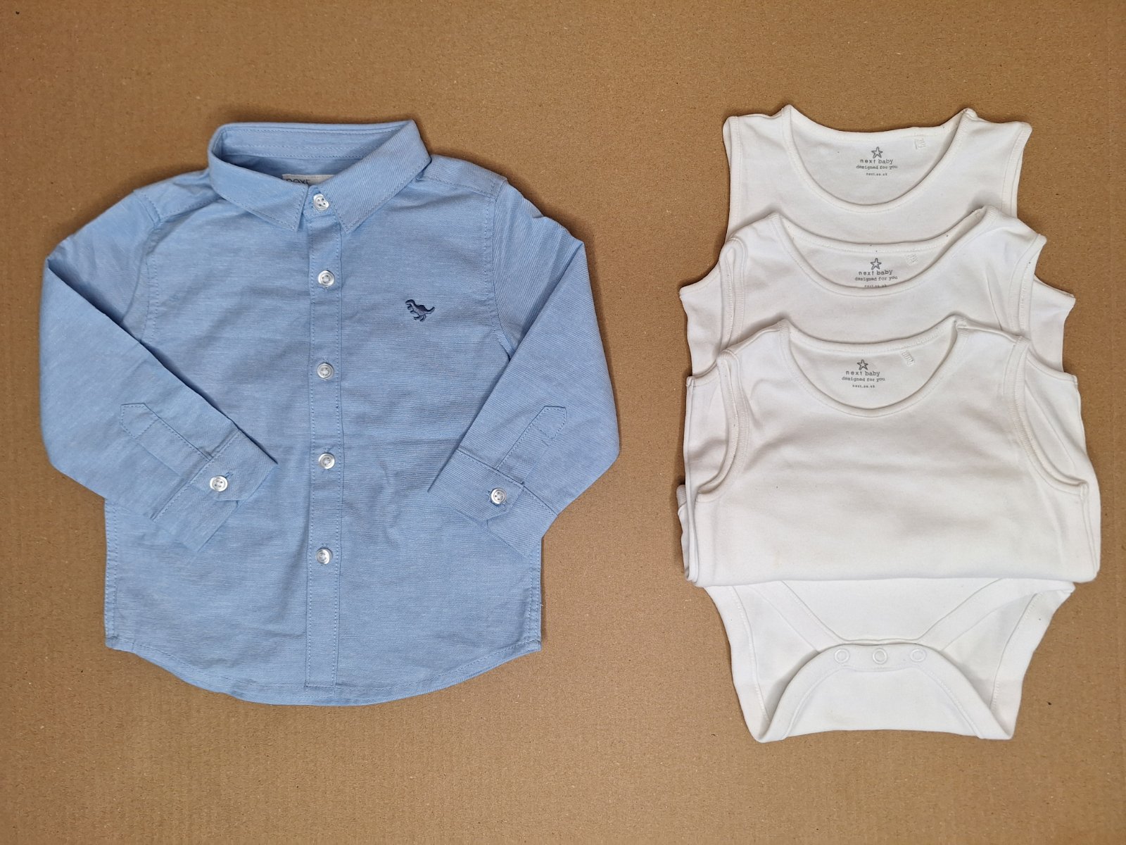 Predám elegantnú košeľu pre chlapčeka a 3 tielka/body zn. Next. Košeľa oblečená iba raz, na fotenie. Bodyčka tiež ako nové. Cena + poštovné