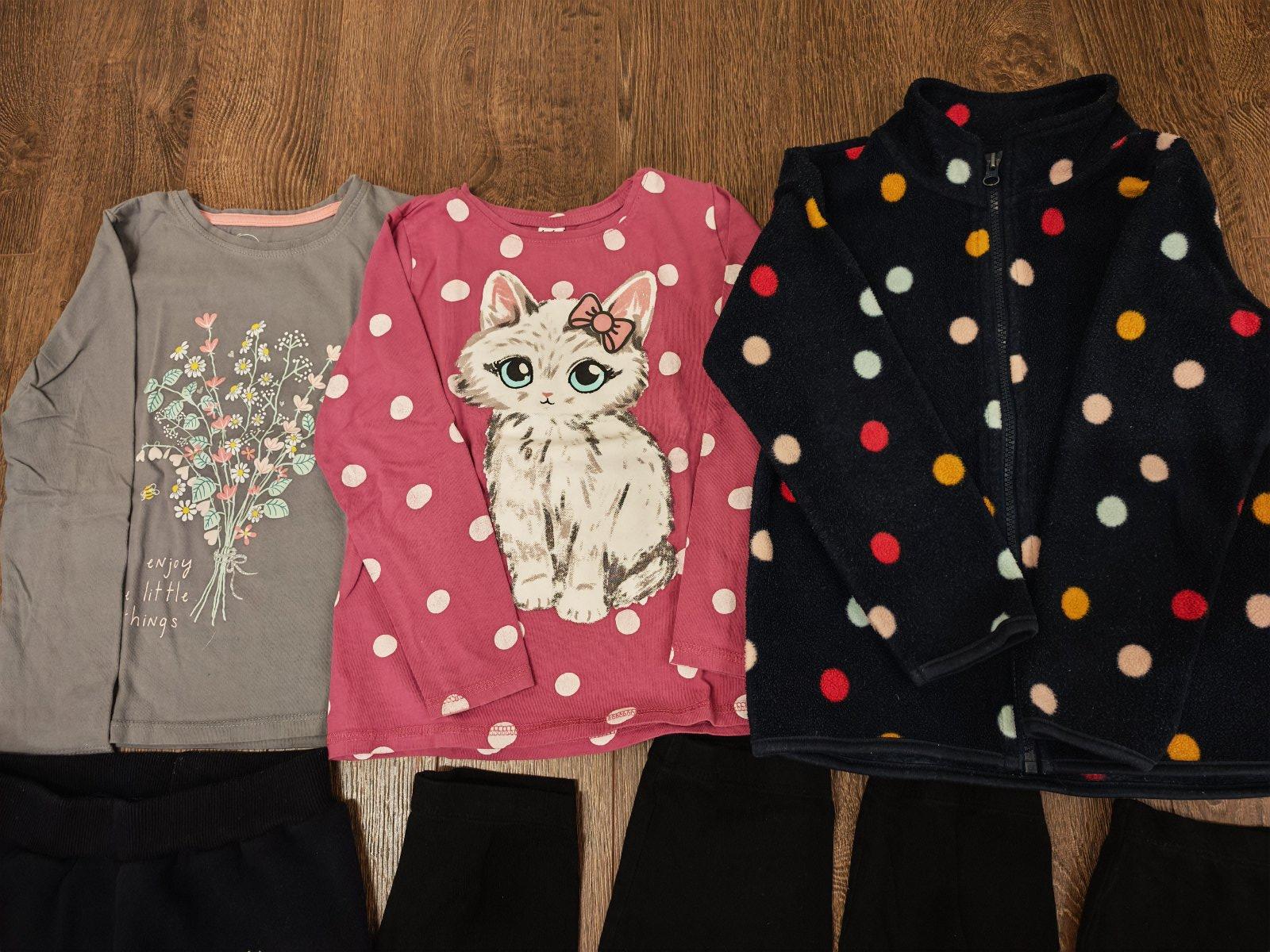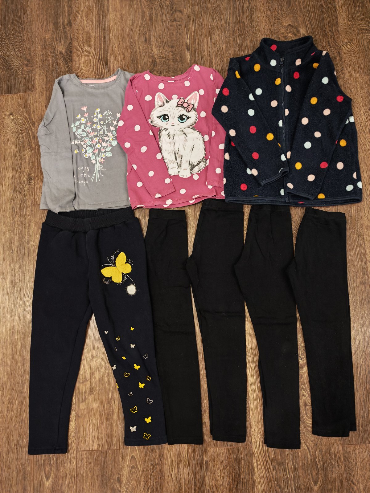 Maly balik oblecenia pre dievcatko, vsetko velkost 122, vecicky vo velmi dobrom stave bez poskodeni. Leginy znacky HM, tricka dopodopo, teplaciky su podsite flisom.