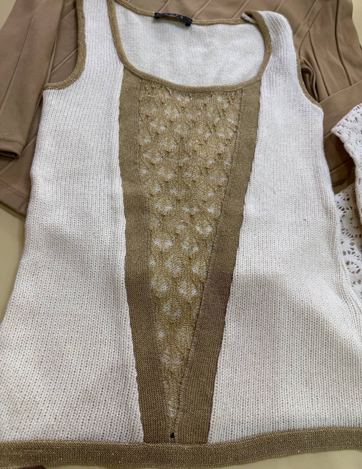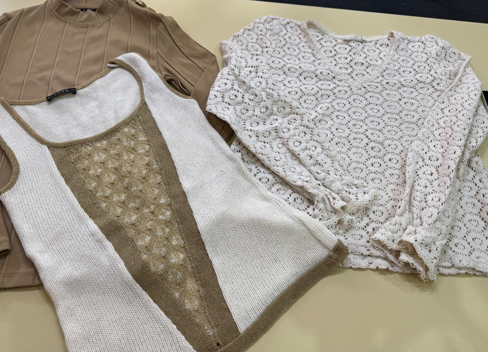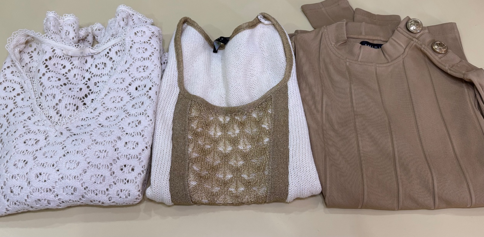 Predám mix 5 tričiek s dlhým rukávom, 1 hnedý rolák so srdiečkom, 1 hnedá tunika so zlatou výšivkou, 1 biele tričko s kapucňou. Veľkosť M. Spolu 8ks.