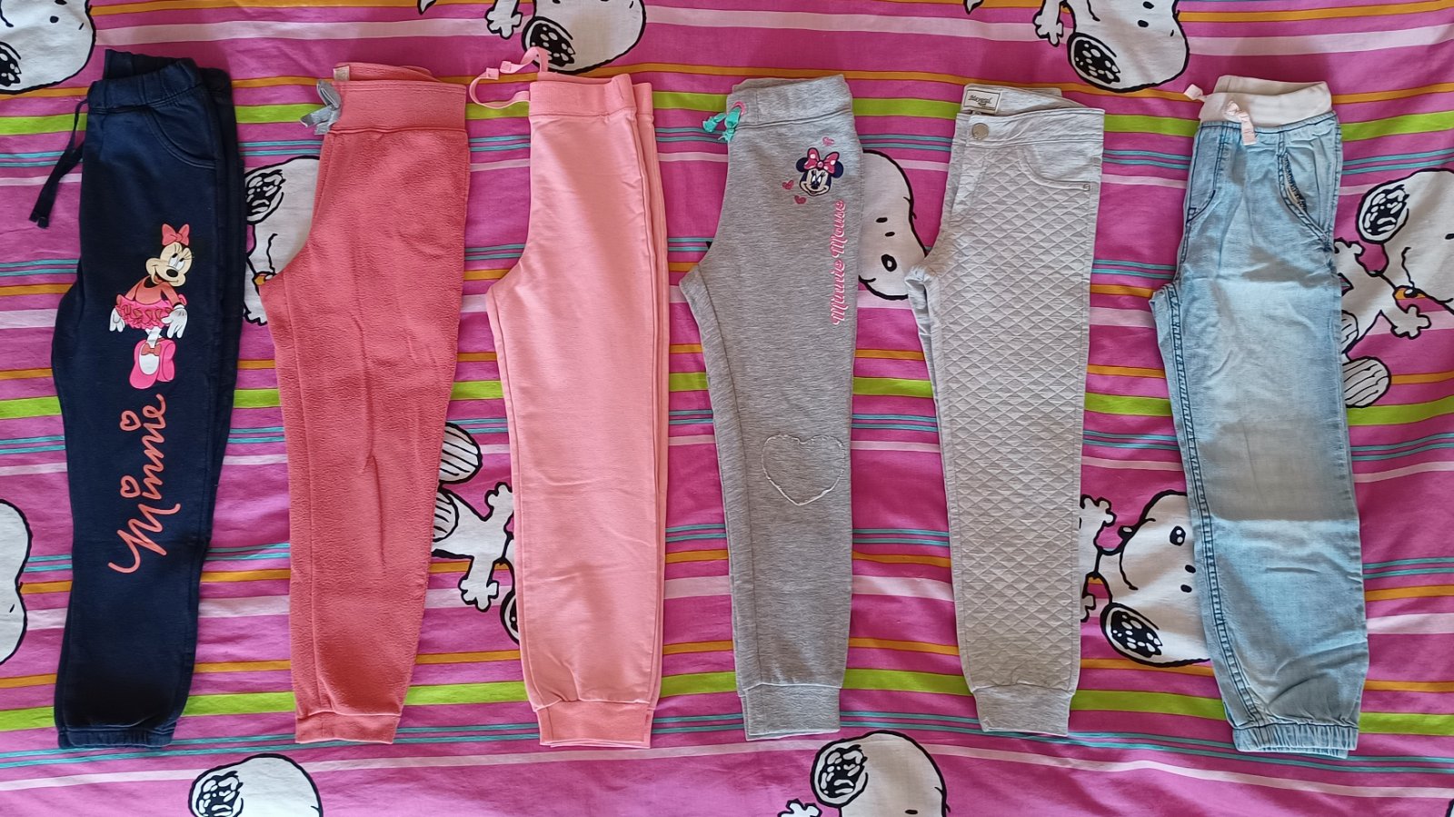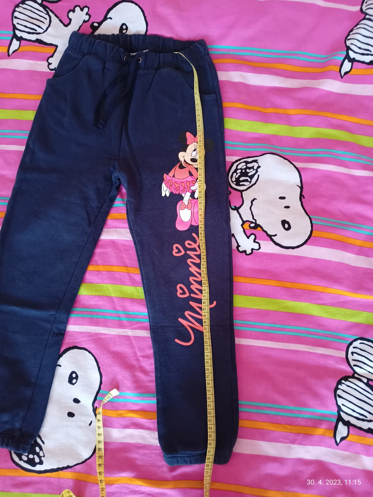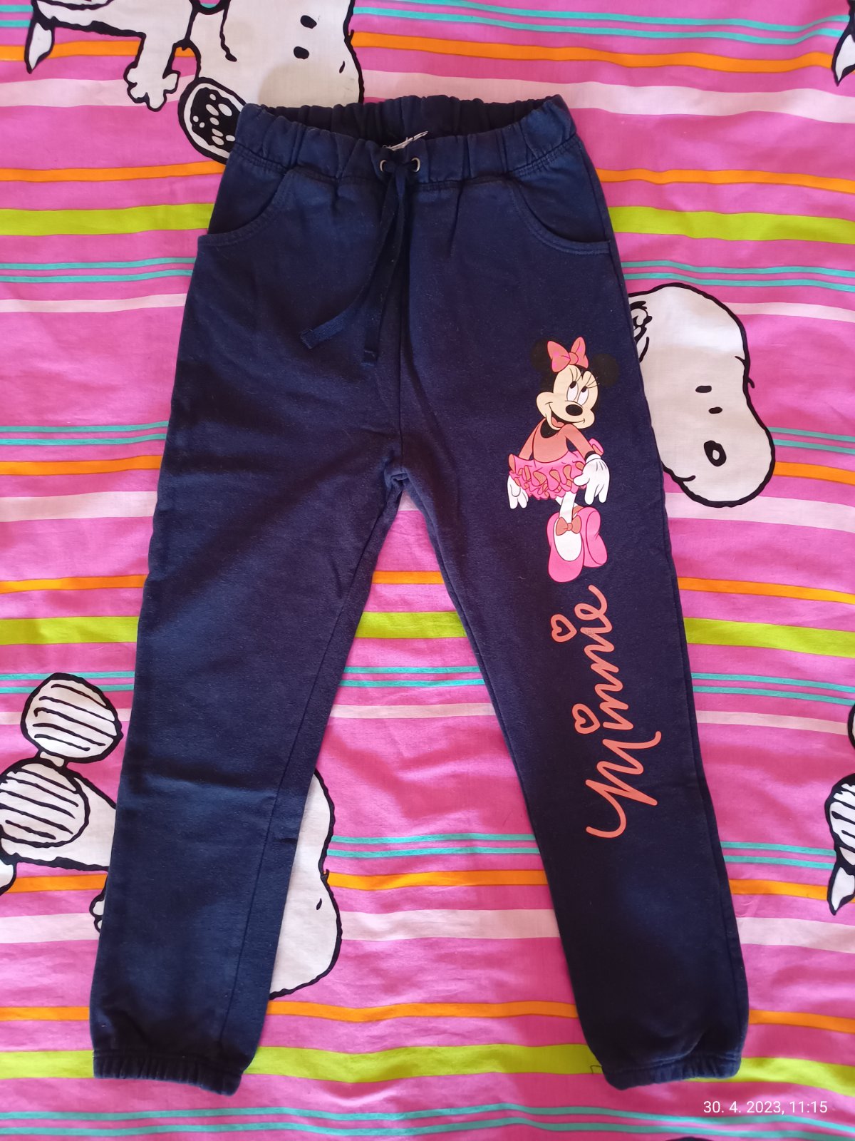 Predam dievcenske teplaciky / nohavice, velkostne sadnu rovnako, dlzku maju cca 68 cm. Minnie mouse, Palomino, Mayoral, HM, Young dimension. Mayoral nohavice maju fliacik v oblasti kolena a blede Minnie teplacky maju zodrate srdiecko na kolene. Cena spolu za vsetko je 7 eur.