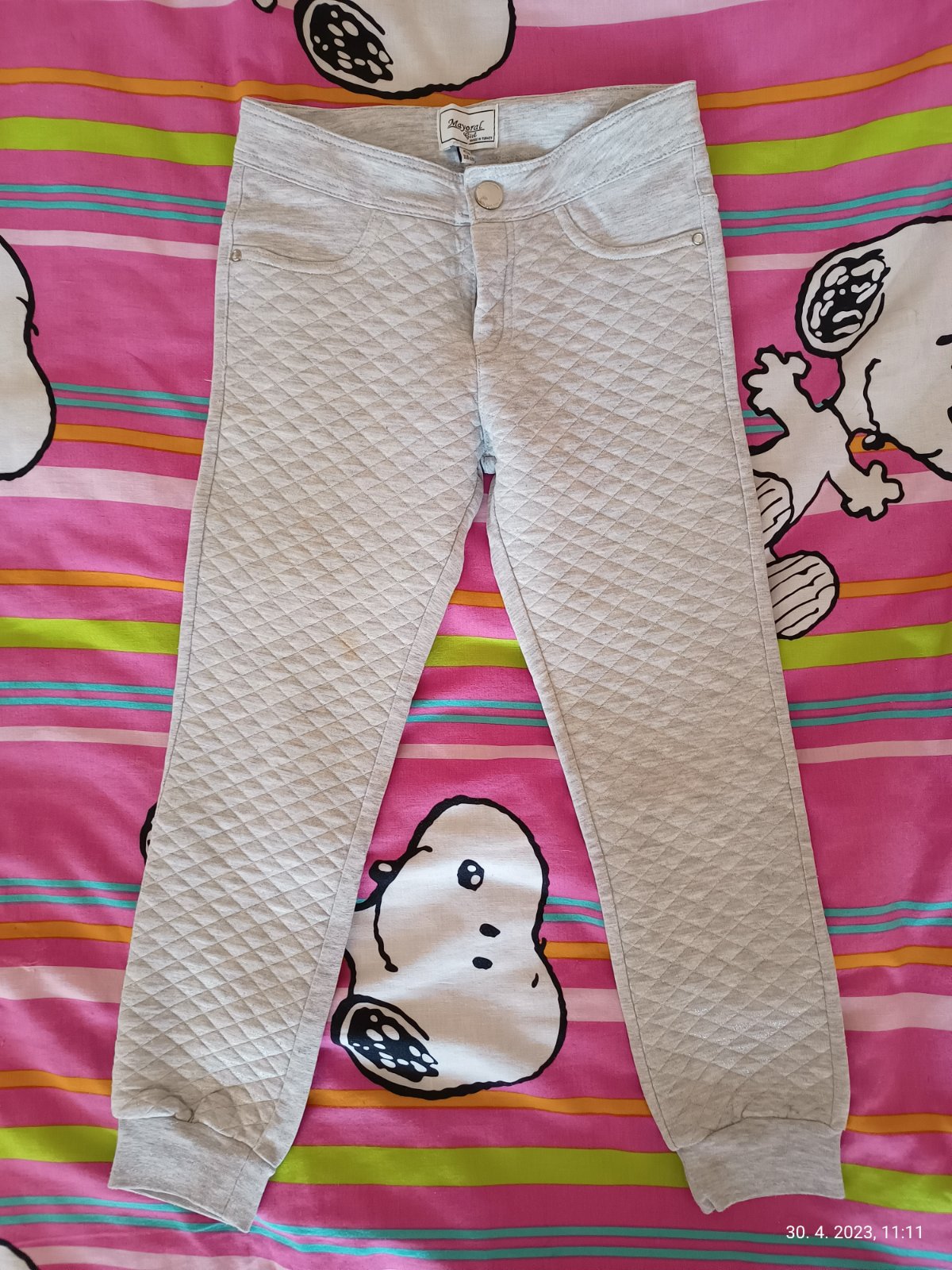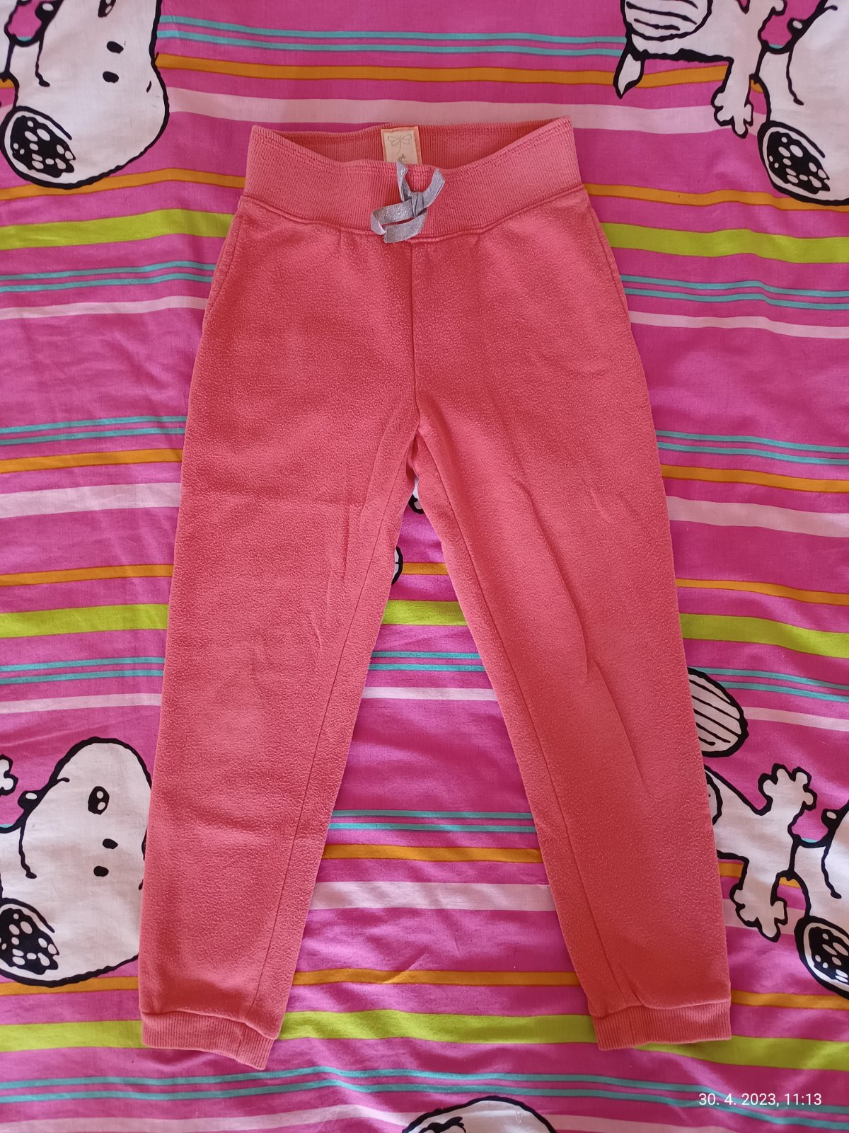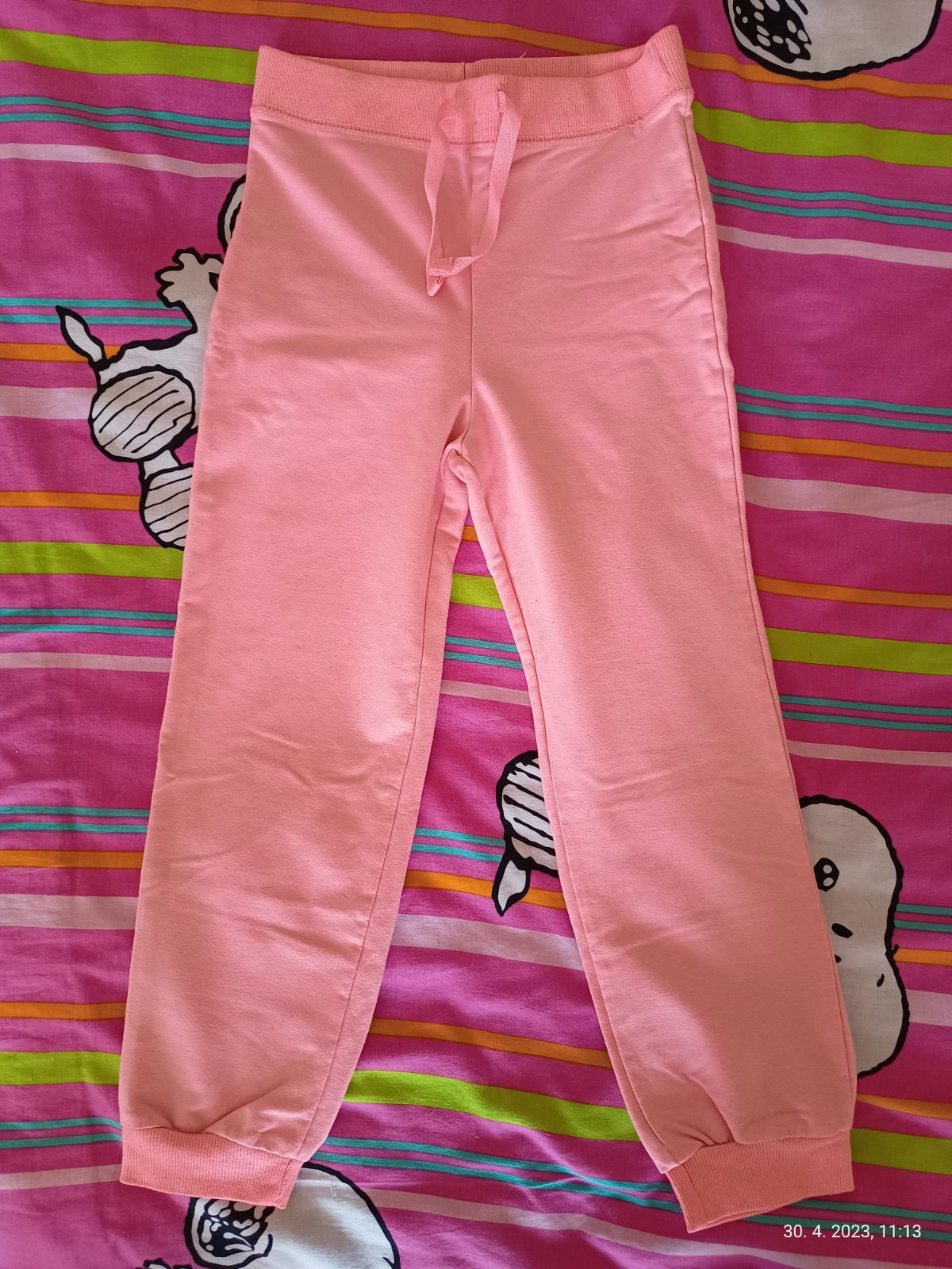 Predam dievcenske teplaciky / nohavice, velkostne sadnu rovnako, dlzku maju cca 68 cm. Minnie mouse, Palomino, Mayoral, HM, Young dimension. Mayoral nohavice maju fliacik v oblasti kolena a blede Minnie teplacky maju zodrate srdiecko na kolene. Cena spolu za vsetko je 7 eur.