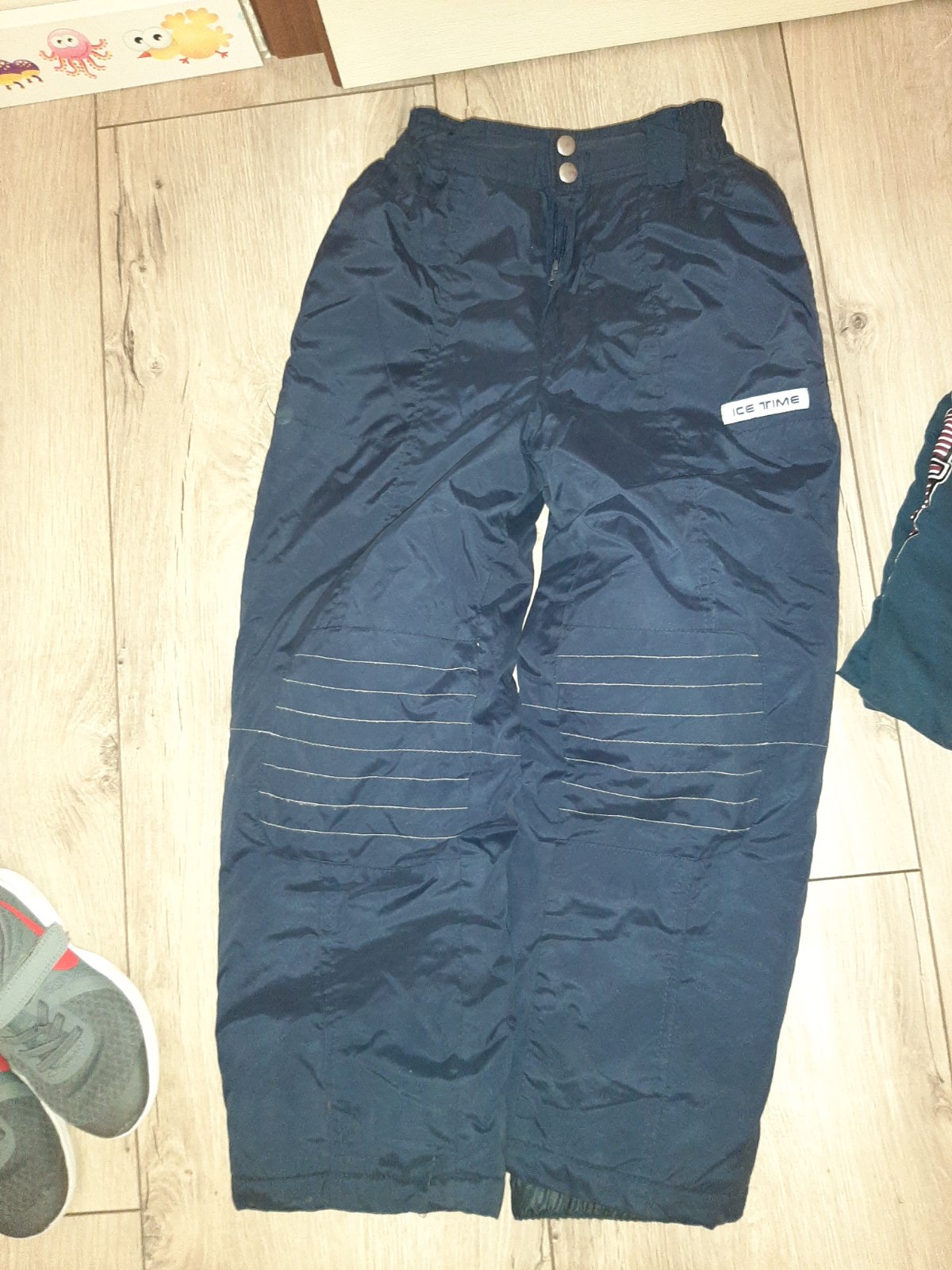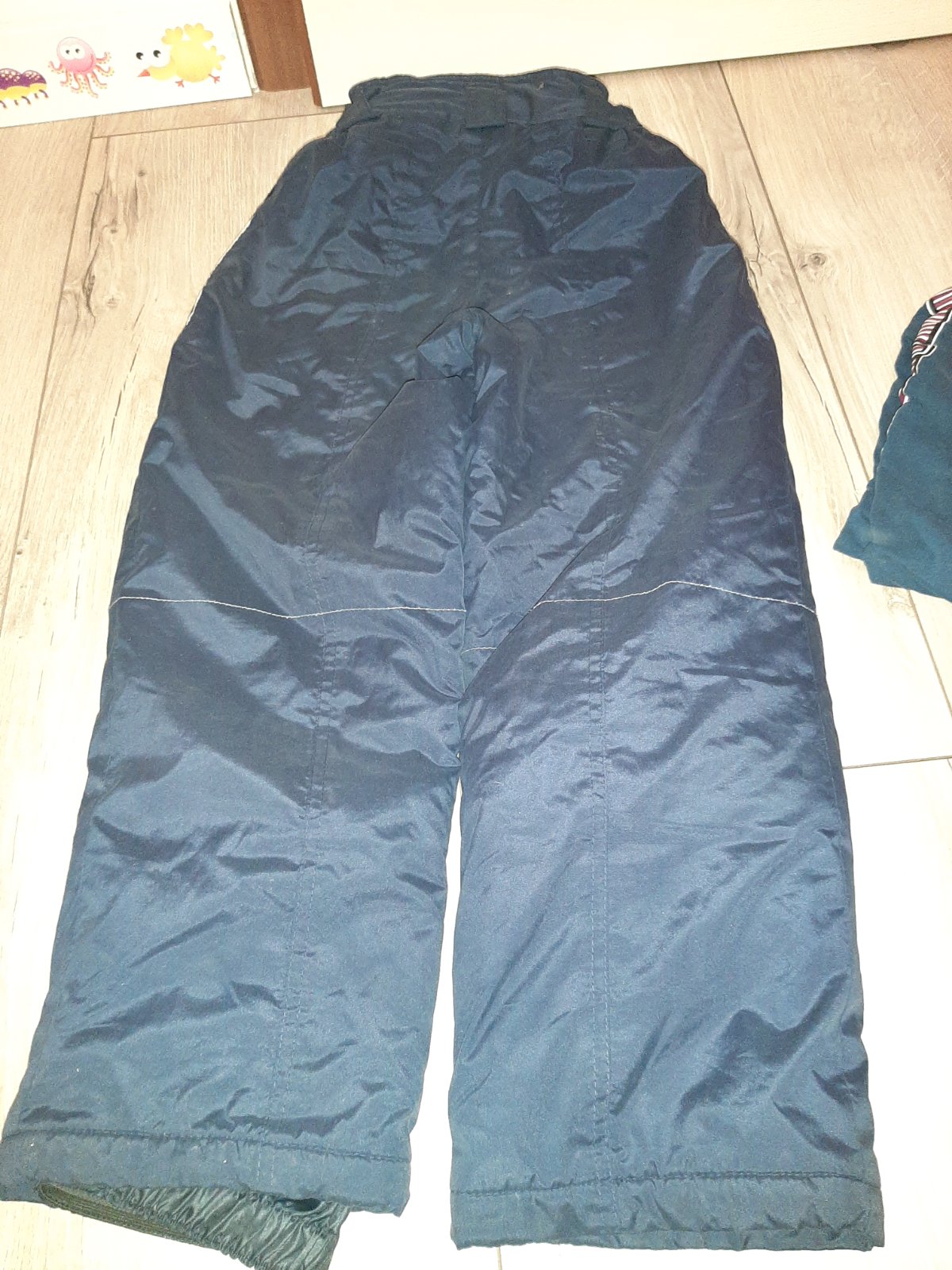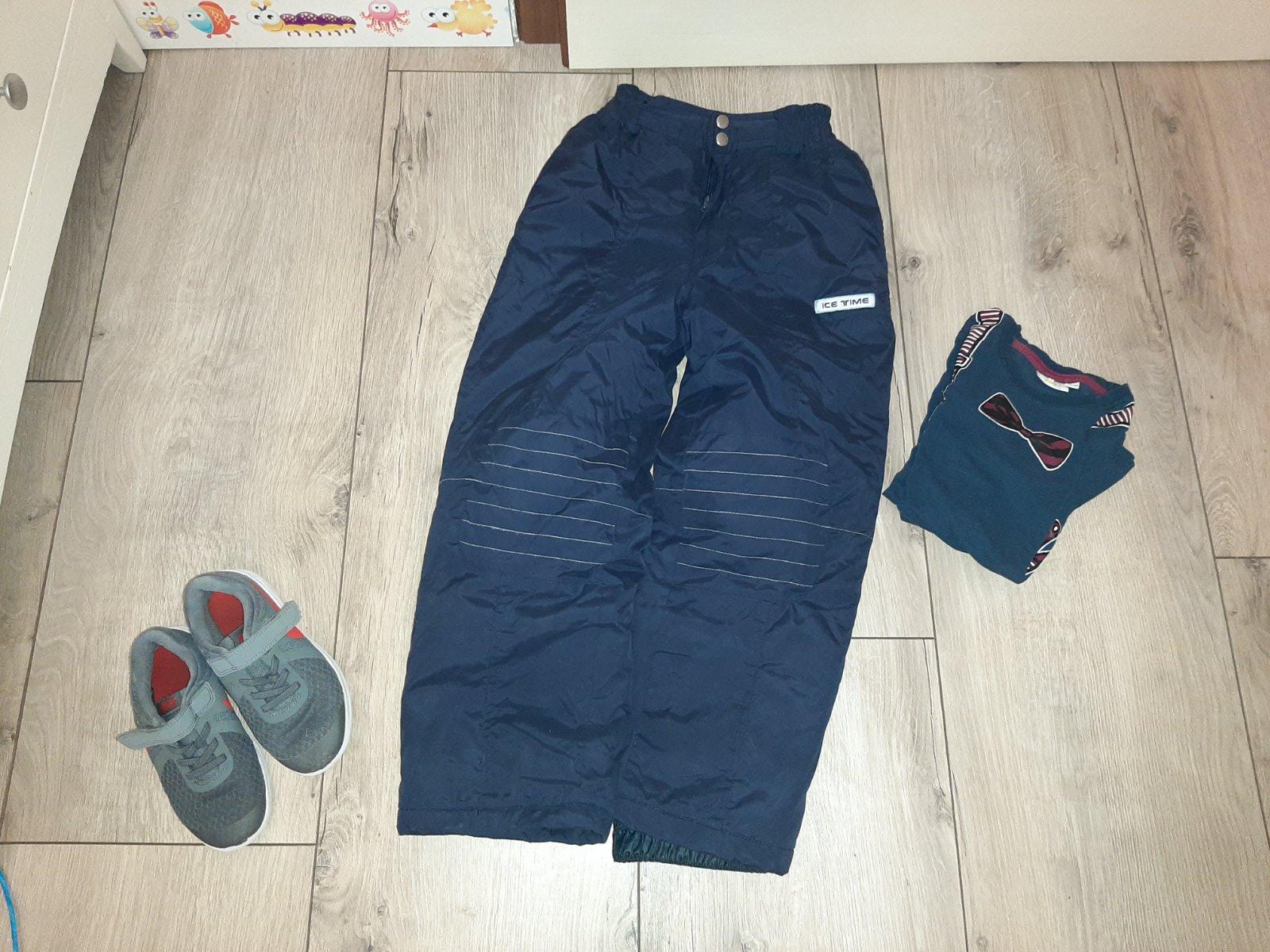 Oteplovačky Funboard, veľ 128, top stav, dĺžka 79 cm, dolný pás proti snehu s protišmykovými gumičkami, nastaviteľný aj suchým zipsom, pás prispôsobivý sú tam gumky, dve vrecká.