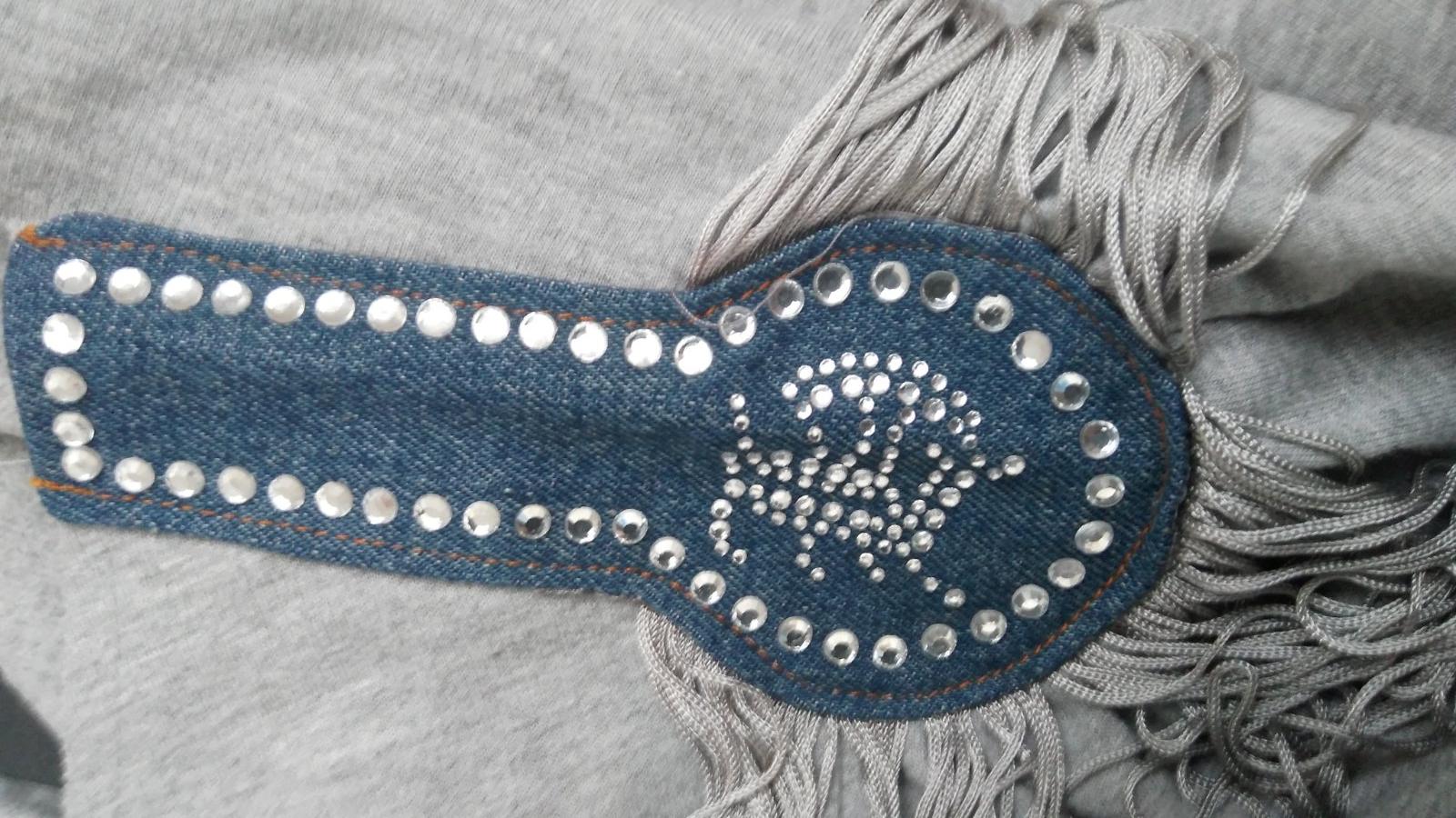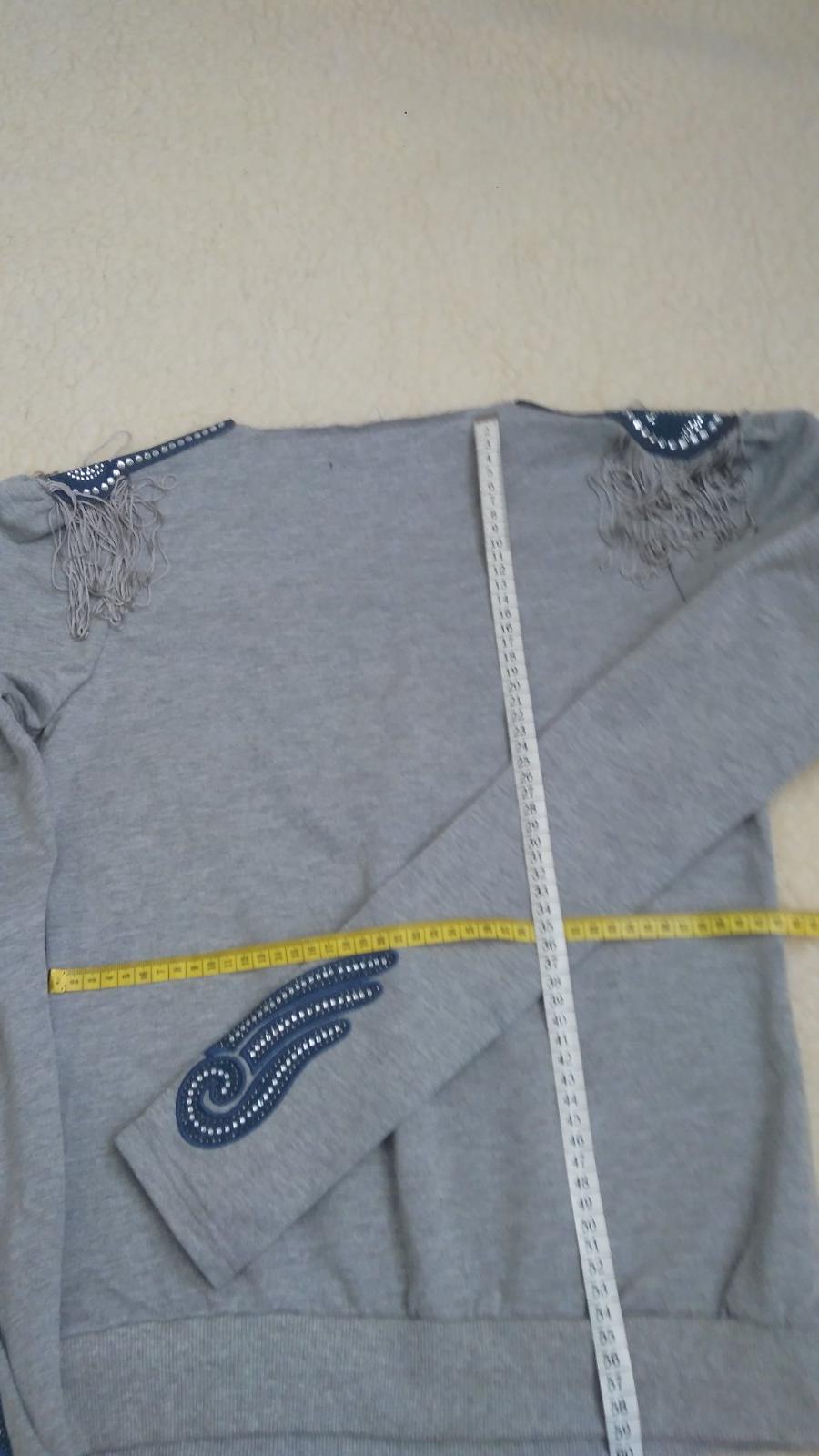 - Pulóver -Zvláštnosťou je ozdoba na remene, strapce + kamienky, ako aj nižšie na rukáve – viď foto, ako nenosené.