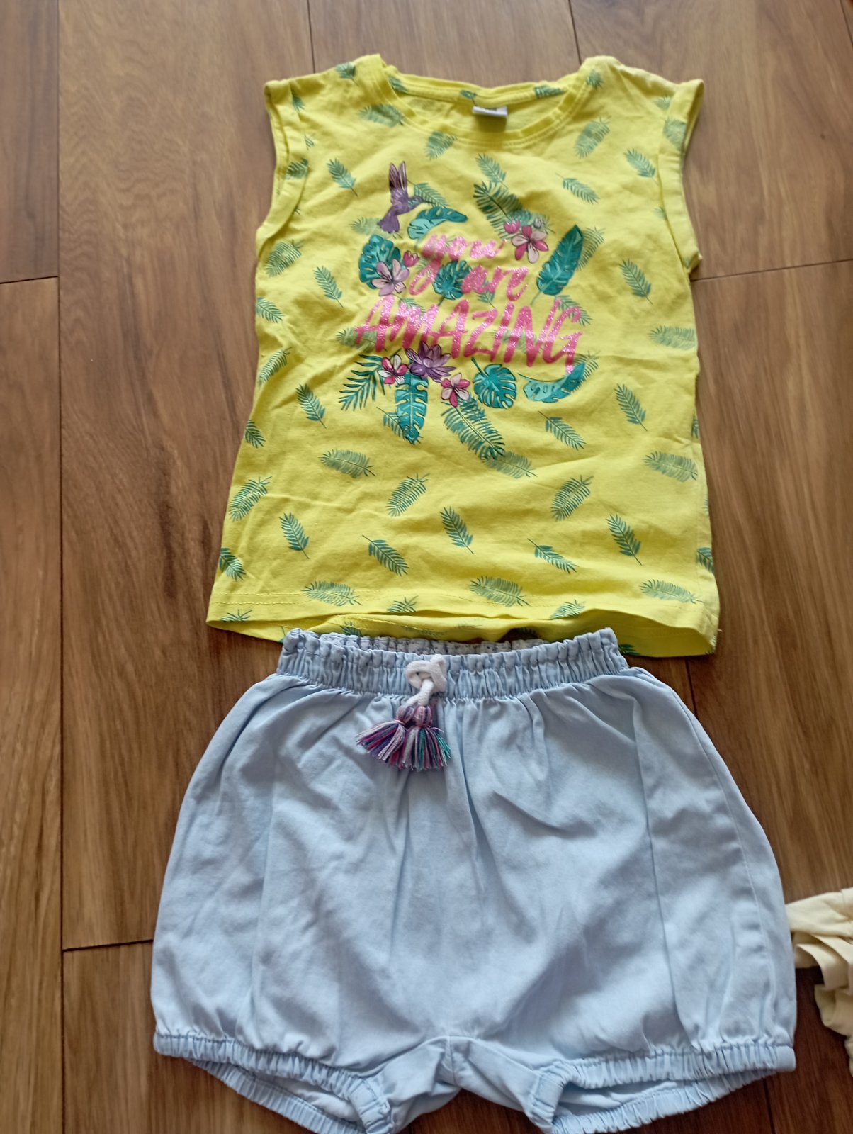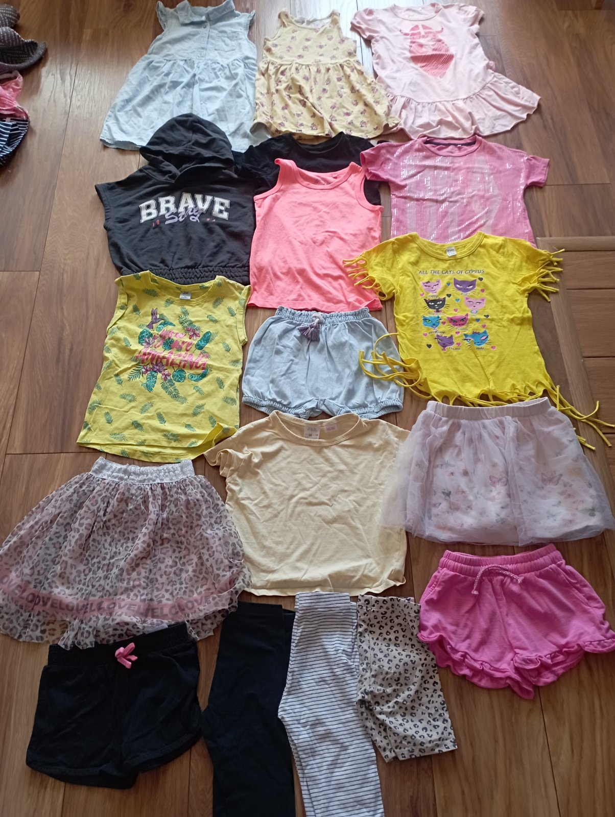 Krásny balík v 104 (3-4)roky Top stav málo nosené Väčšina HM .Šaty tenké riflové,príjemné HM,šaty žlté HM ,marhulove Danefer,Ružové tricko Primigi,,žlté bavlnene raz oprate ,Tmavosede s kapucňou HM,skreklave tielko Next ,kratase riflové tenké príjemnéZara ,sukňa motýle Reserved ,sukňa leopard Monstar,Čierne tričko HM,ružové krátke kratase HM v 98 nosili sme aj v 104 ,legíny 3/4 nové 1 HM a ďalšie palomino,leopardie sieťku HM a cierne doppdopo.Zlte tričko amazonka KiK