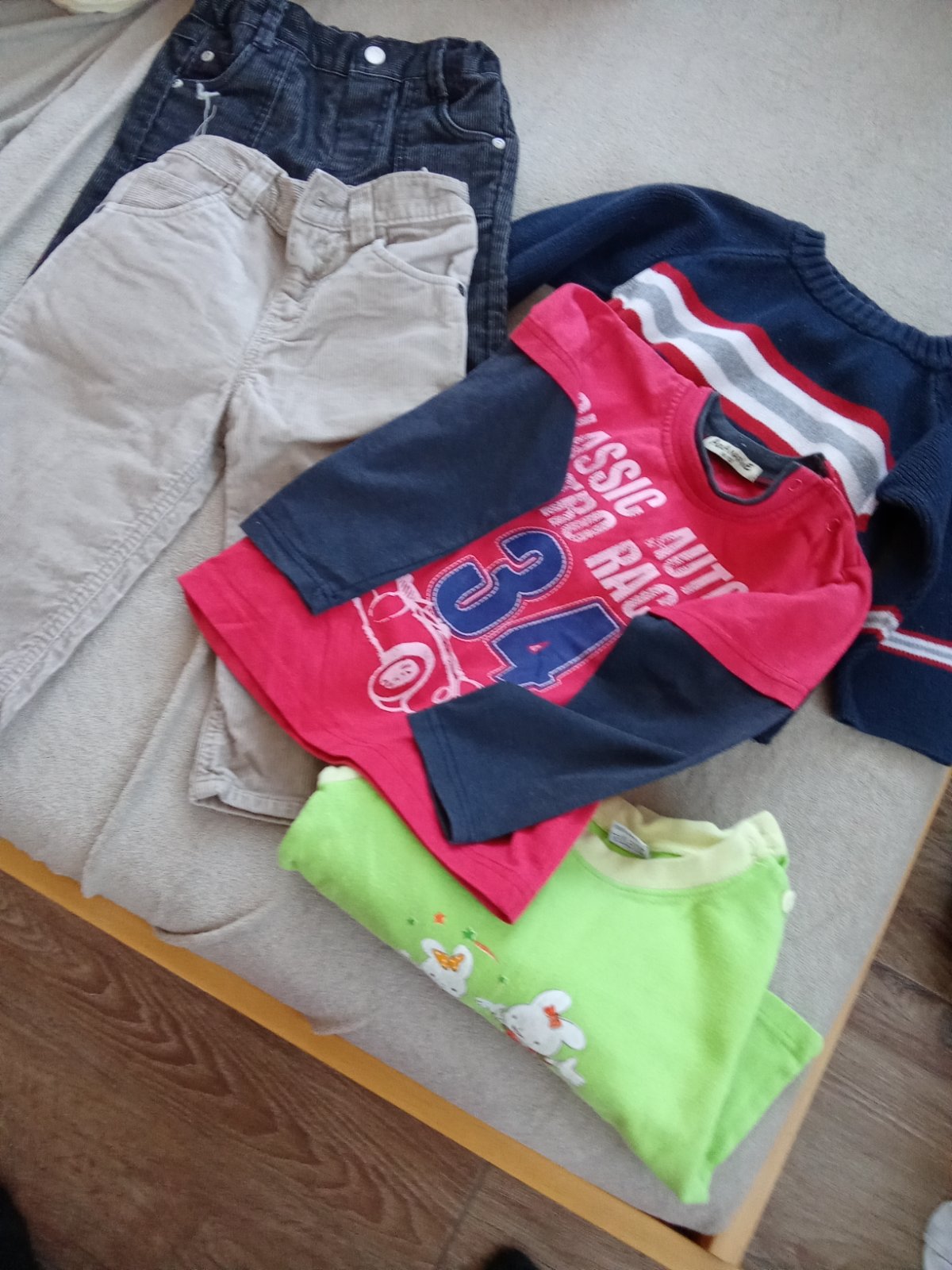 Predám balík oblečenia vo velkosti 92. 18 ks+ 5 ks darujem na donosenie 13€+poštovné Na dobierku neposielam.