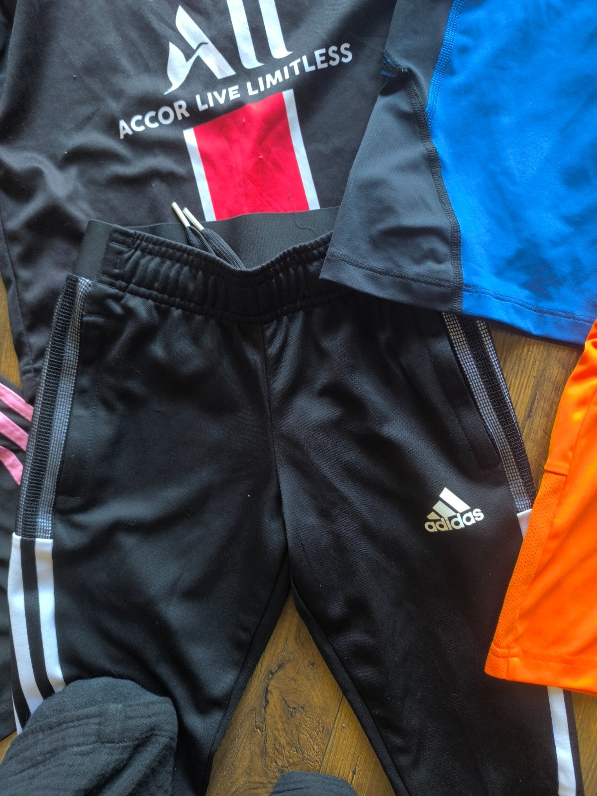 Balík športového oblečenia, dres Messi , tepláky Adidas (dierka na kolienku) tričká, kraťasy na tréningy alebo na dvor super cena spolu