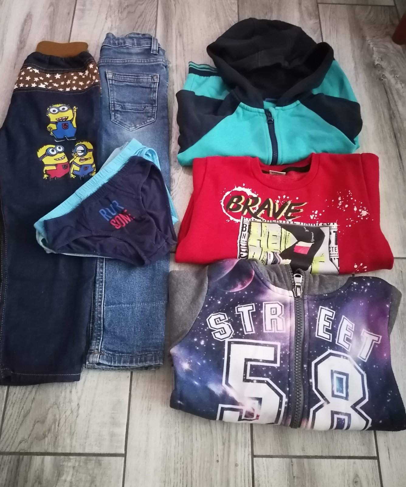V peknom zachovalom stave, na jednej mikinke trochu fliačik. Nosené do škôlky, ešte isto poslúži.