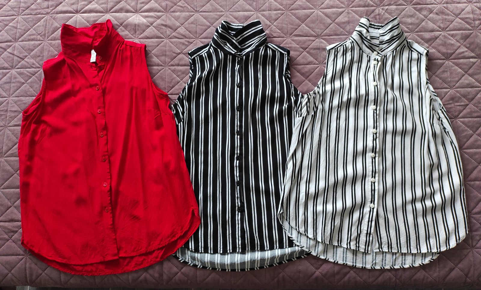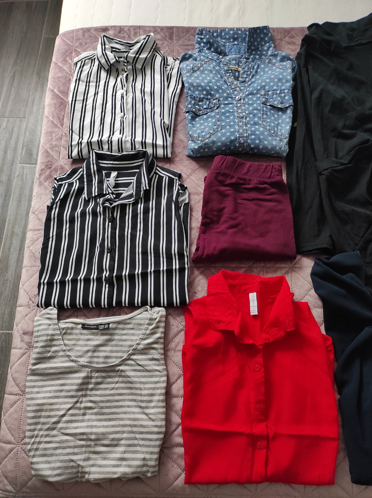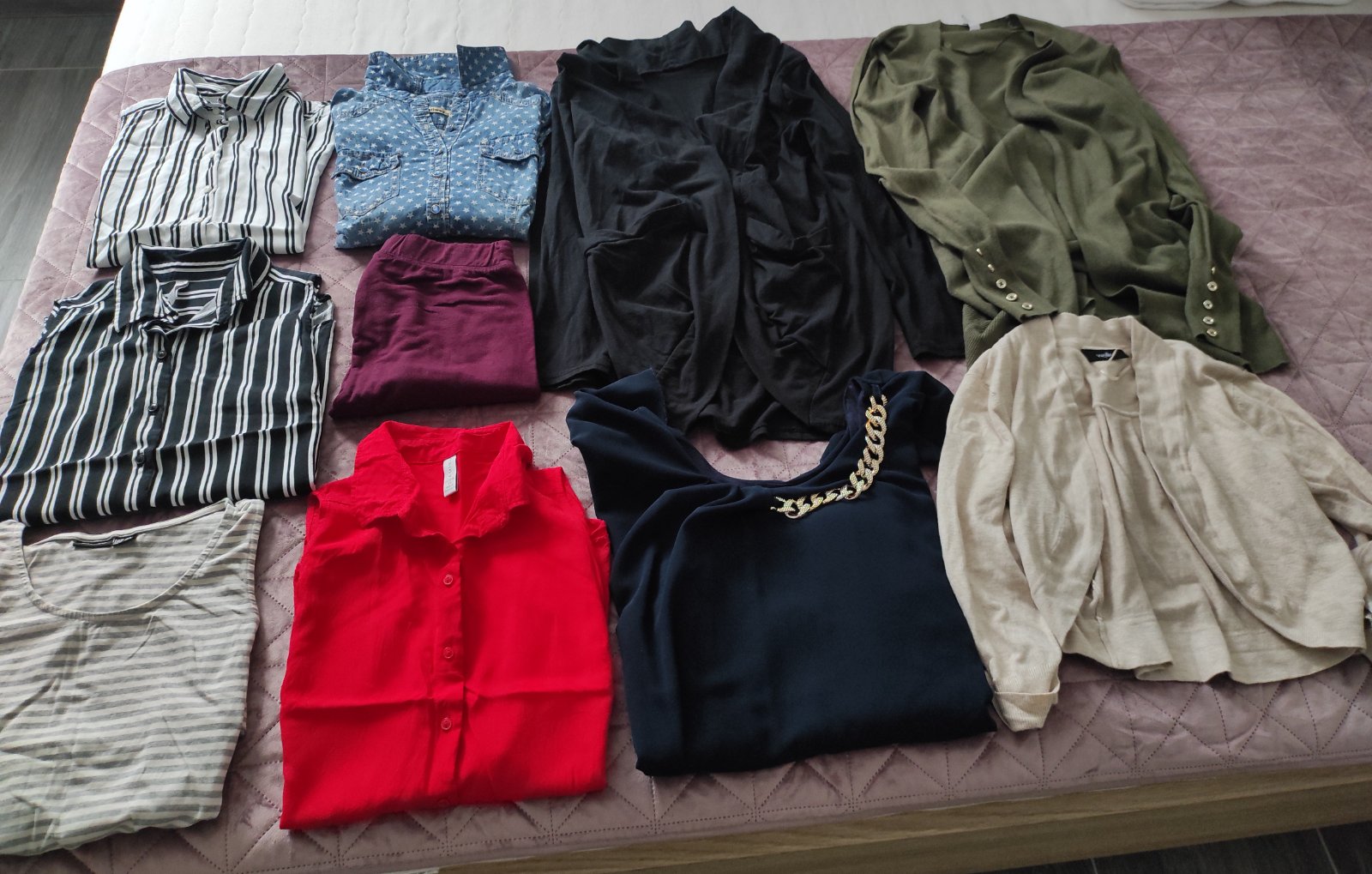 Žiadne veľké poškodenia na oblečení nie sú, veľkosti sú niekde písané XS, no ja nosím S,M