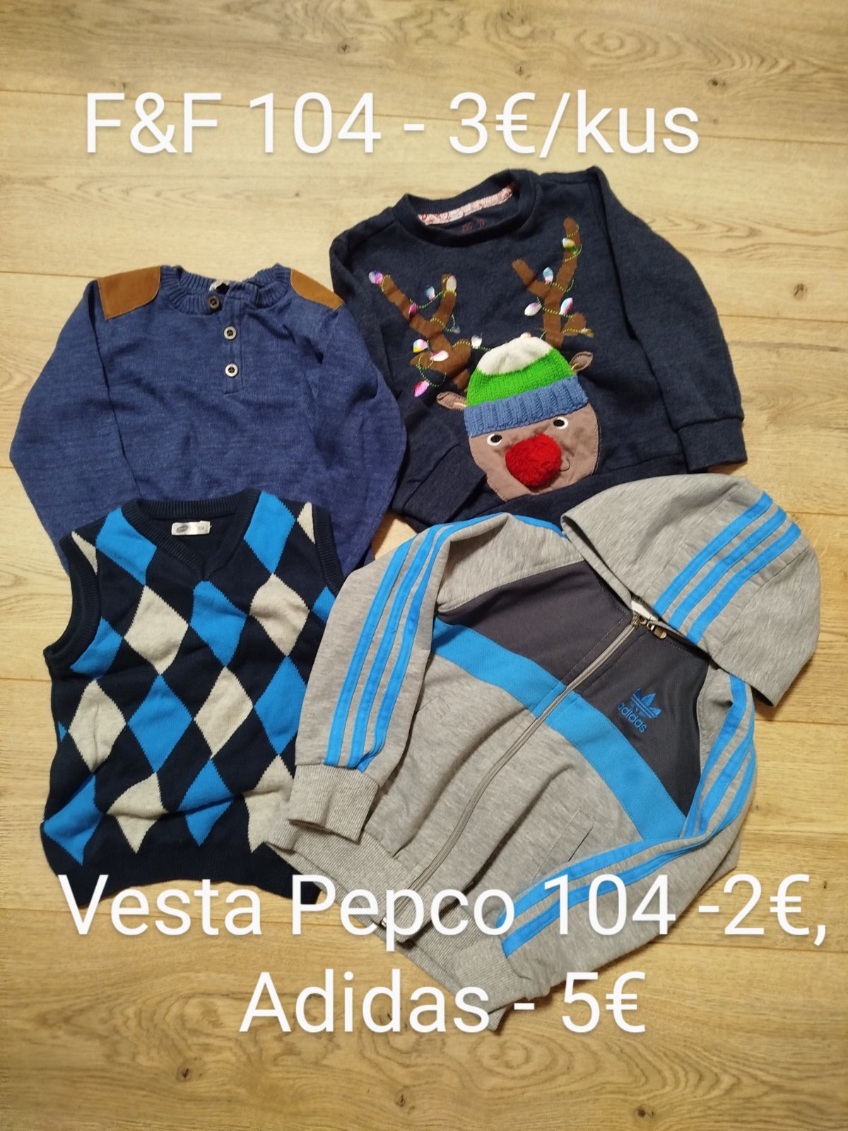 Predám oblečenie veľkosť 104 buď jednotlivo (ceny na foto) alebo ako balík ... Na cenách sa vieme aj dohodnúť