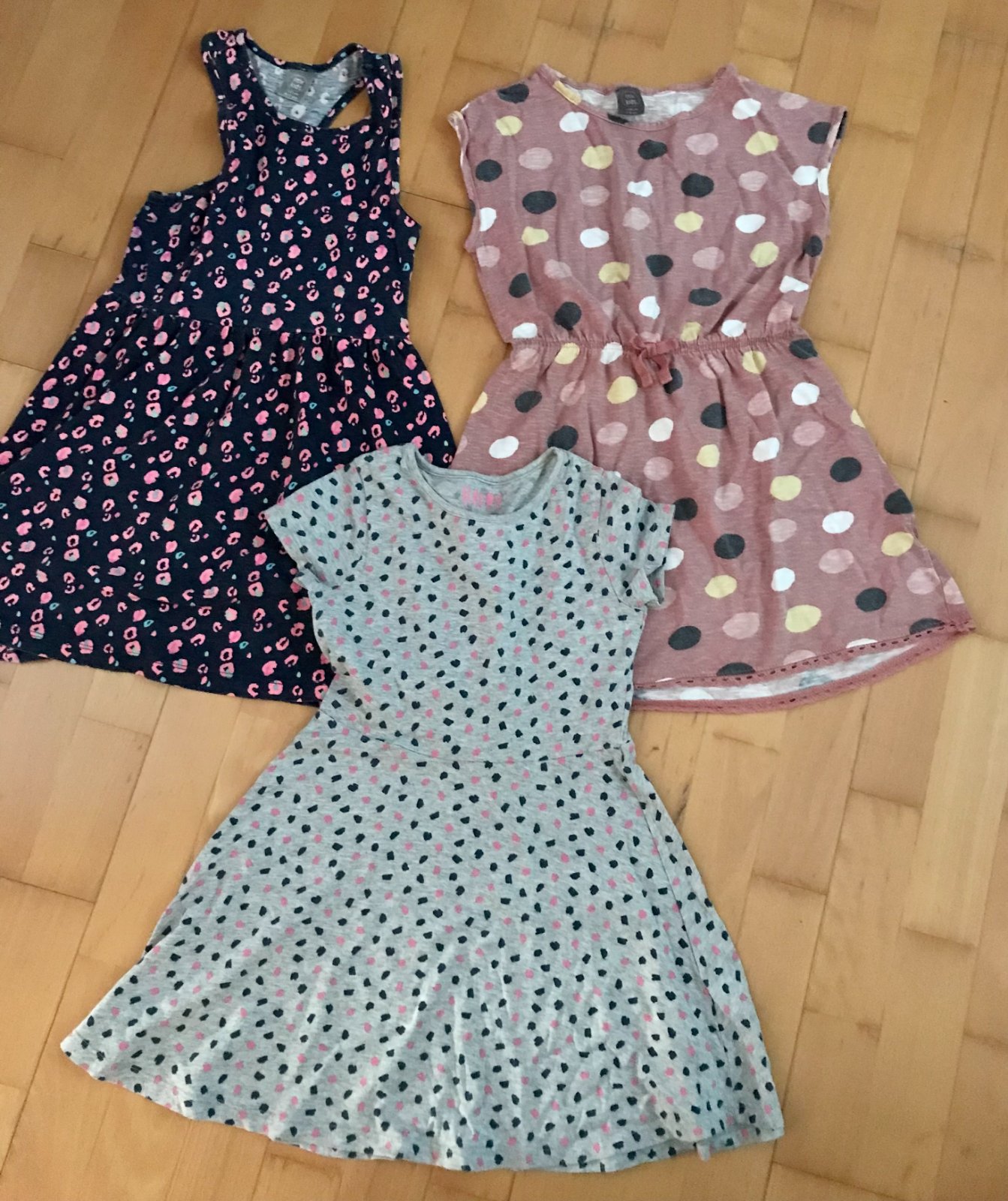 Dvoje naľavo F&F 7-8 r Ružové kúpili , písané 110/116,ale v pohode 122 Modré Shein 122 Cena za všetky