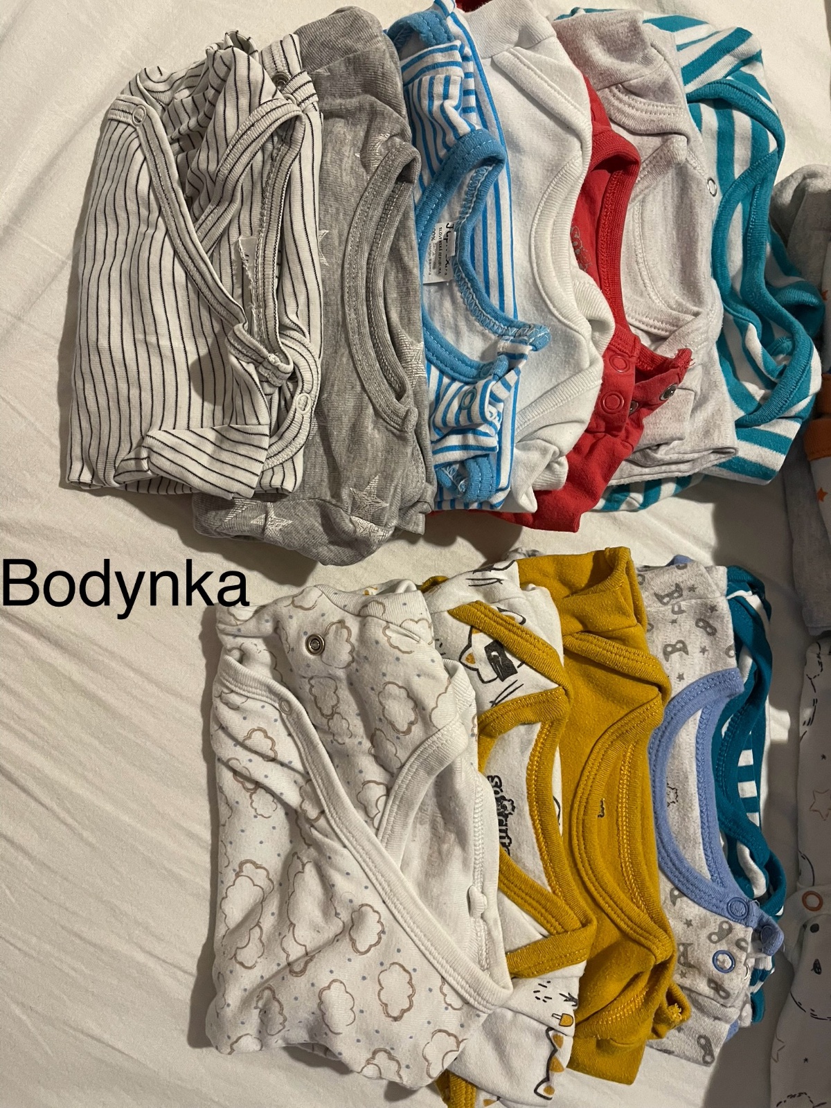 Veľký balík oblečenia pre chlapčeka. Obsahuje 4x tričiek, 1x svetrík, 2x overal na spanie, 3x dupačky, 2x polodupačky, 1x tepláčky, 5x body, 1x čiapočka, 6párov ponožiek, 1x papučky, 4x kabátik, 1x...