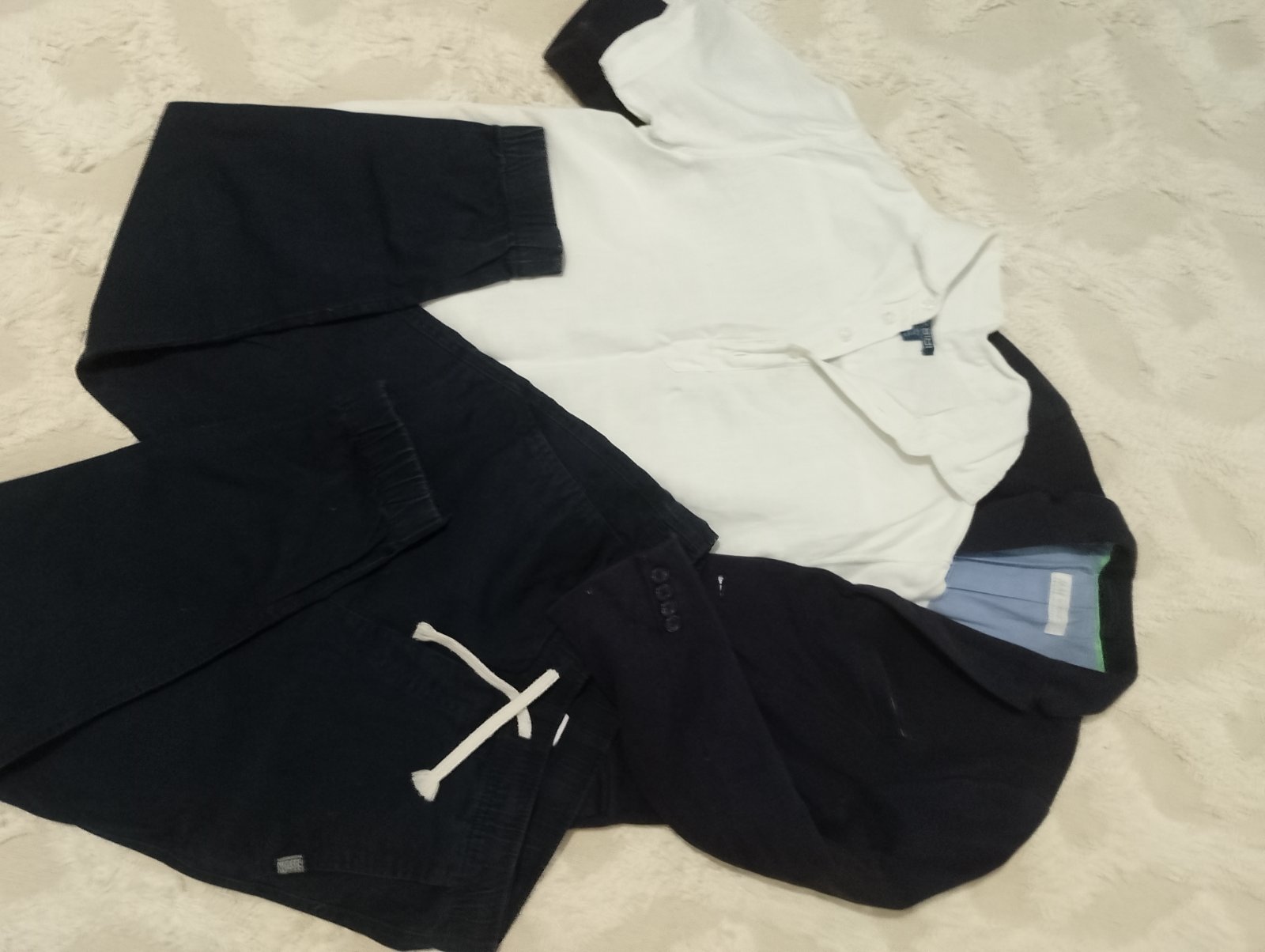 Predám ozaj pekne veci po synovi úplne v super stave, bez akýchkoľvek poškodení či podobne. V balíku je H&M sako tak skôr "teplákové"ako oblekovy materiál veľkosť 140
