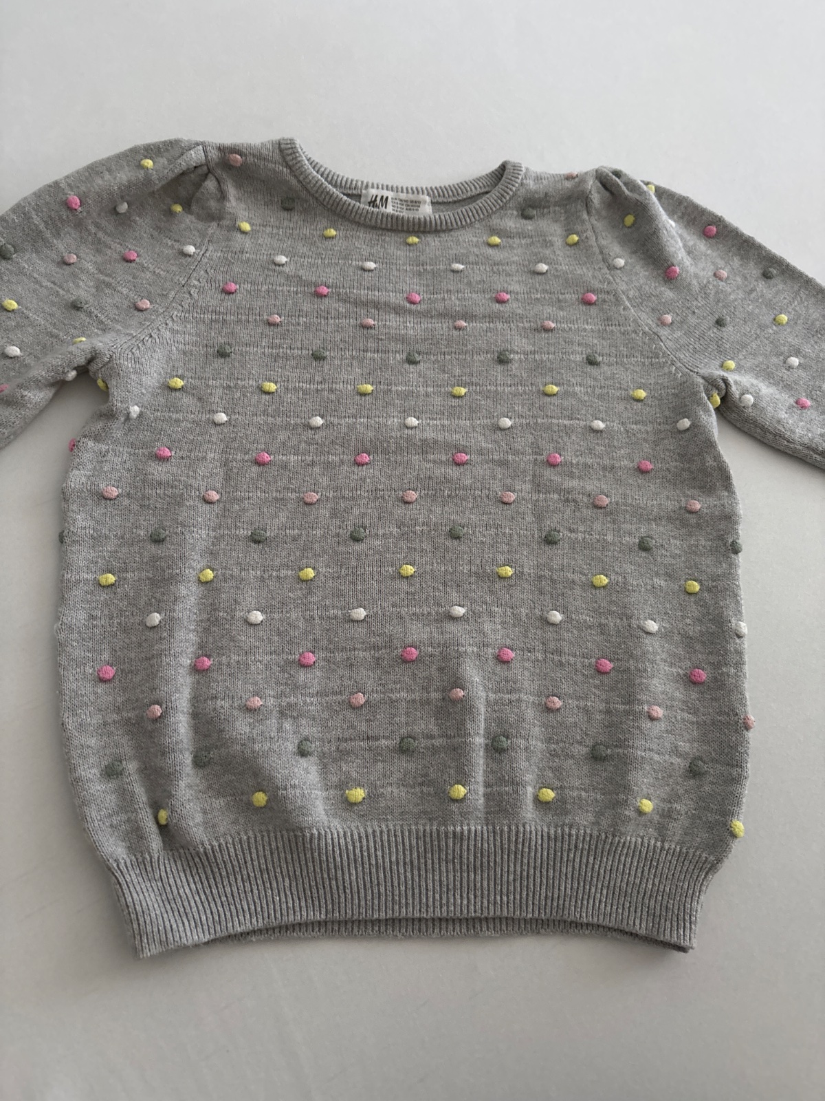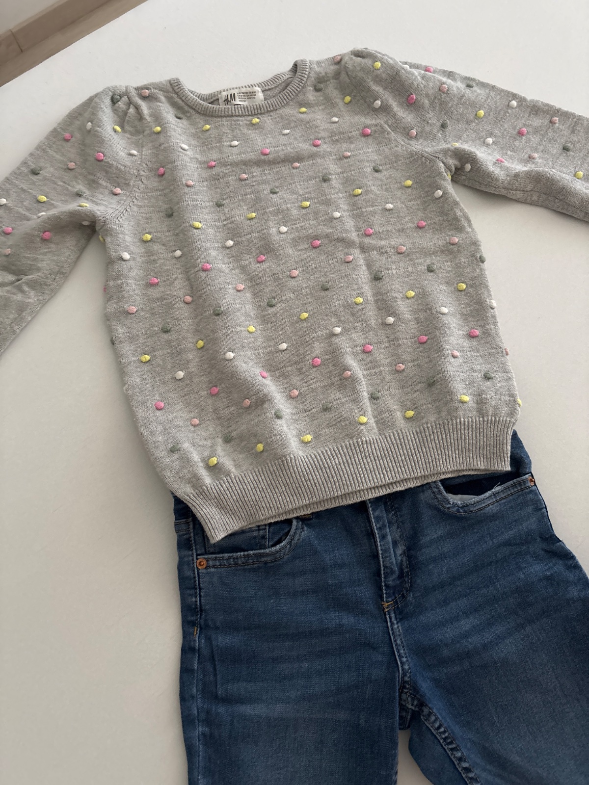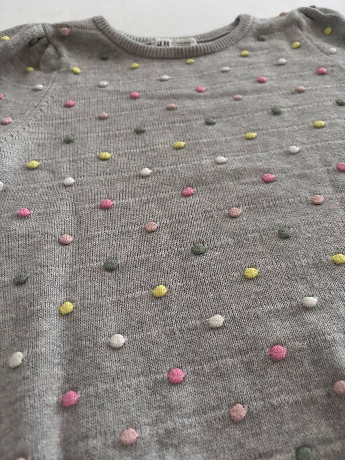 A pulover bledo šedej farbe s farebnými bombulkami :)