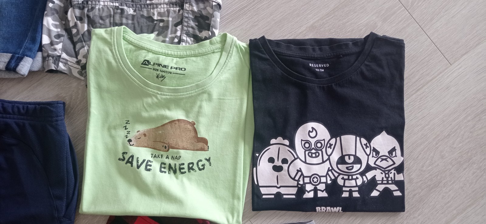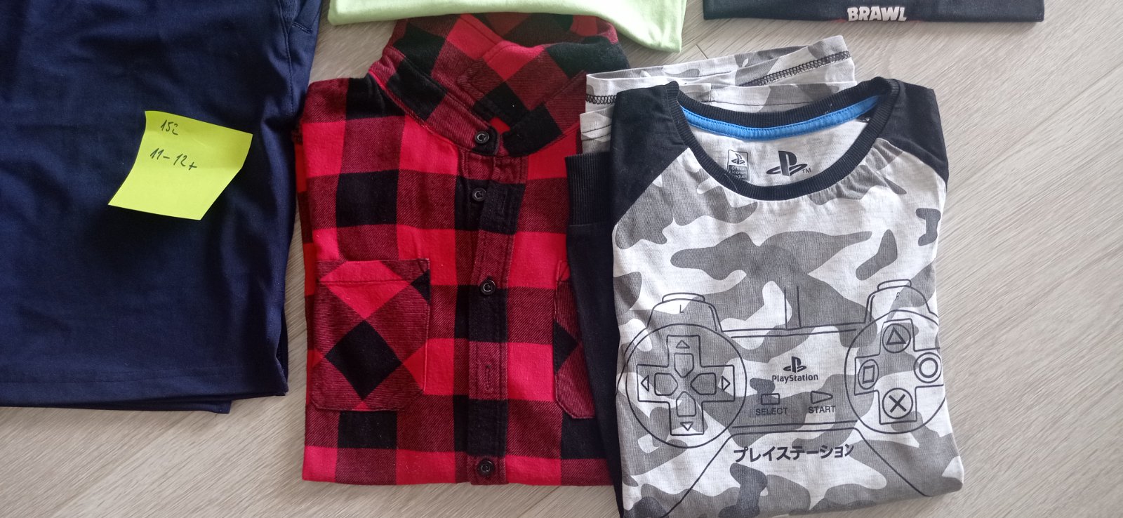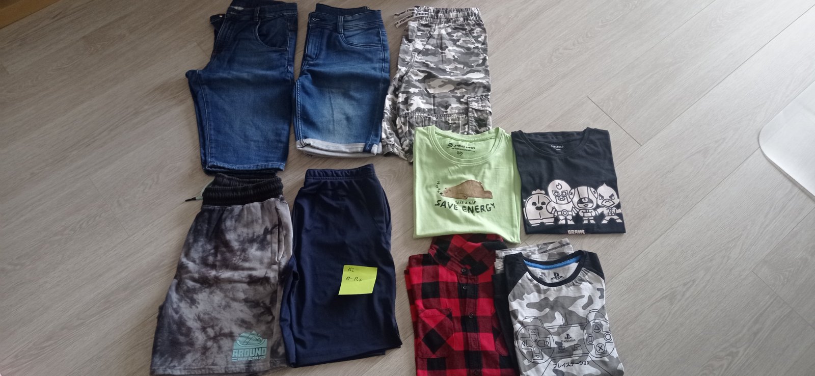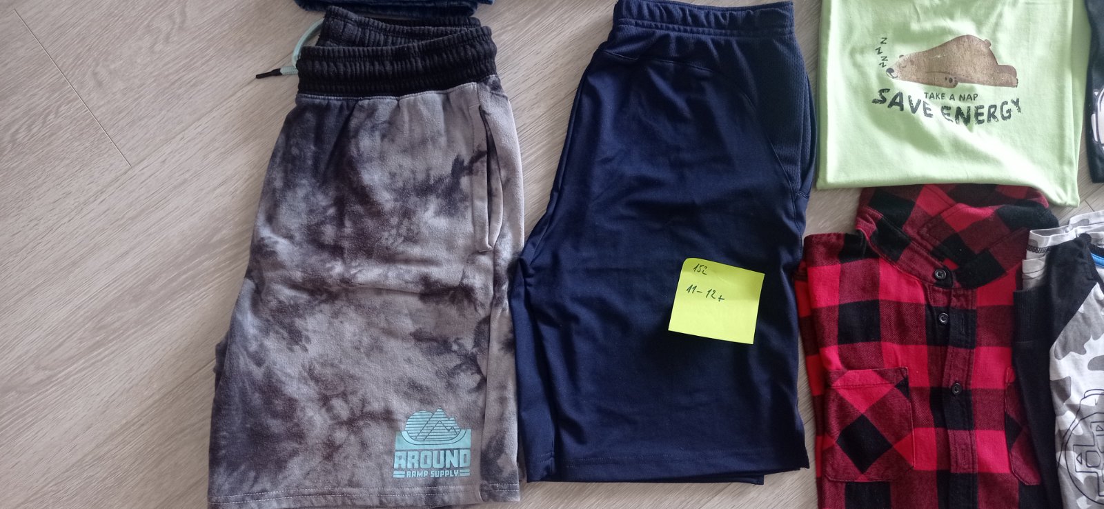 Oblečenie veľkosti 152, na 11-12r. Funkčné kraťasy tmavomodré, šedé teplakovina, 2x riflové, maskáčove . Košeľa dlhý rukáv flanelova, maskáčove tričko dlhý rukáv, 2x krátky rukáv.