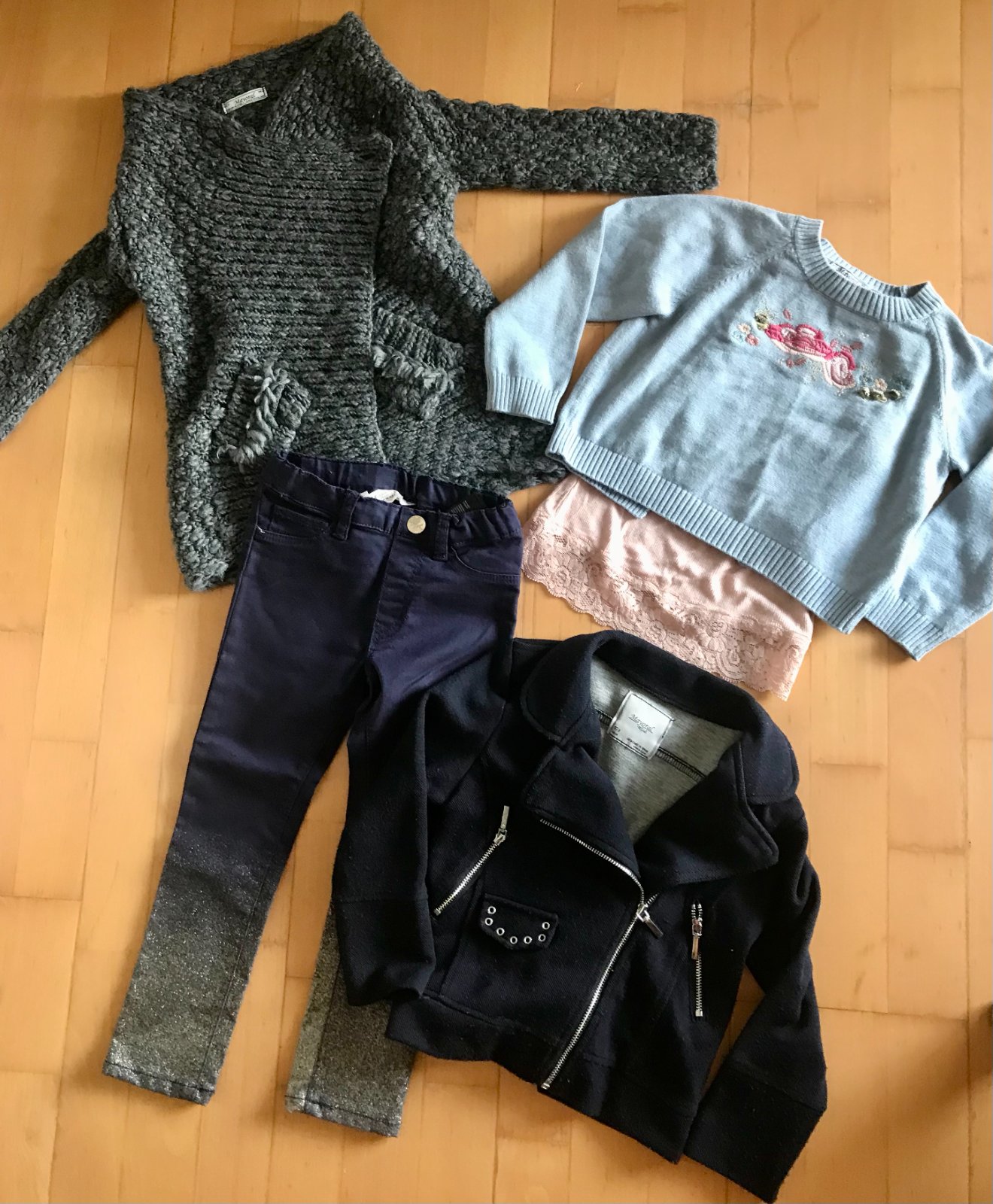 Prvé rifle F&F bez poškodenia. Druhé rifke Pepco zmolkavé, nejaký ten fliačik. Tretie rifle F&F , veľkosť pisana 92 , ale je to 86 . Natiahnuta je v nohaviciach gumka. Mikiny v nosenom stave-ale ok...
