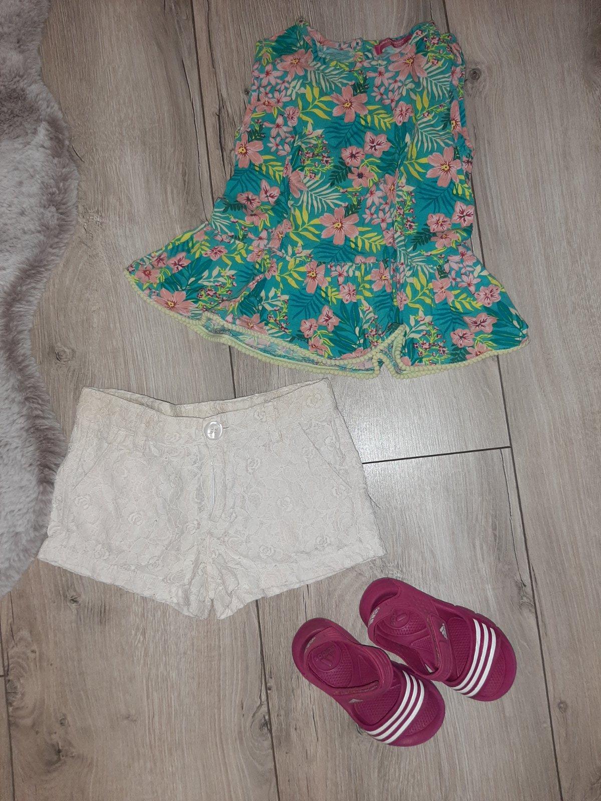 Krajkové kraťasky Benetton, veľ 116, písané 120, na páse akoby zažltnuté, zapínanie na zips a gombík. Pás 31 cm, v páse gumka takže prispôsobiteľné.