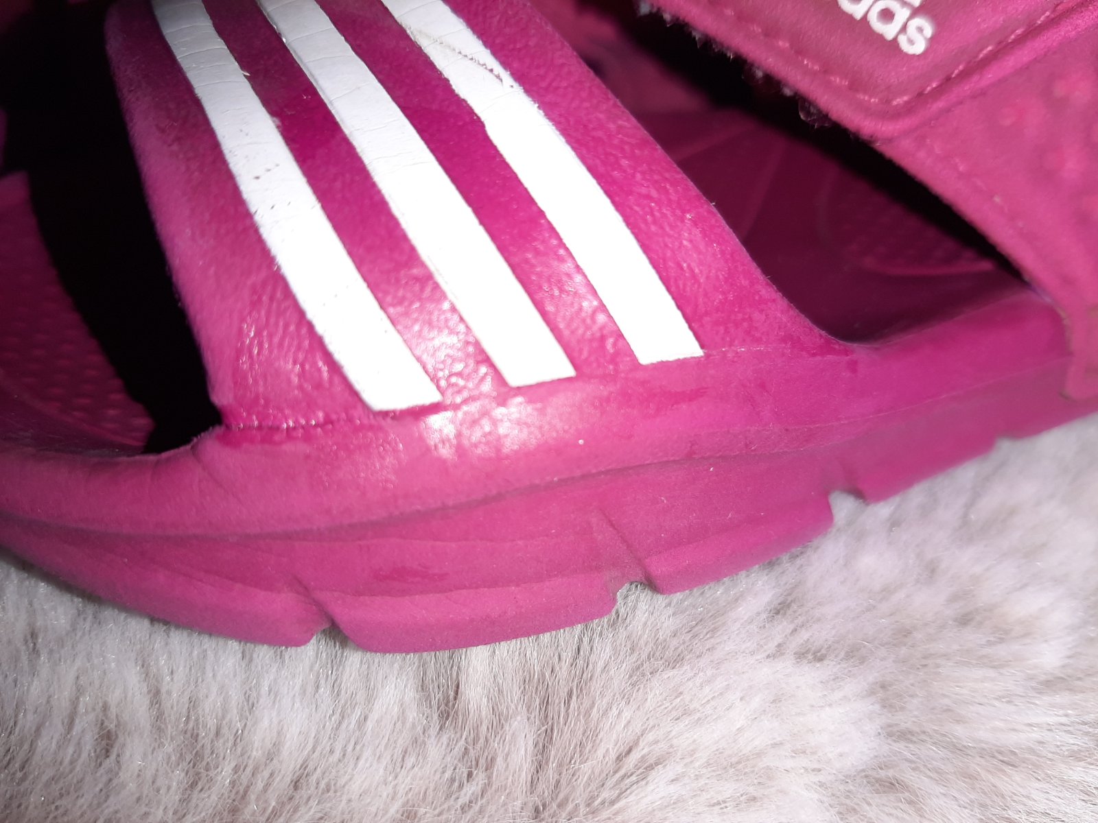 Sandálky Adidas Aquah, veľ 24, vnútorná dĺžka 15 cm, vpredu v detaile na fito asi 3 mm lepené.