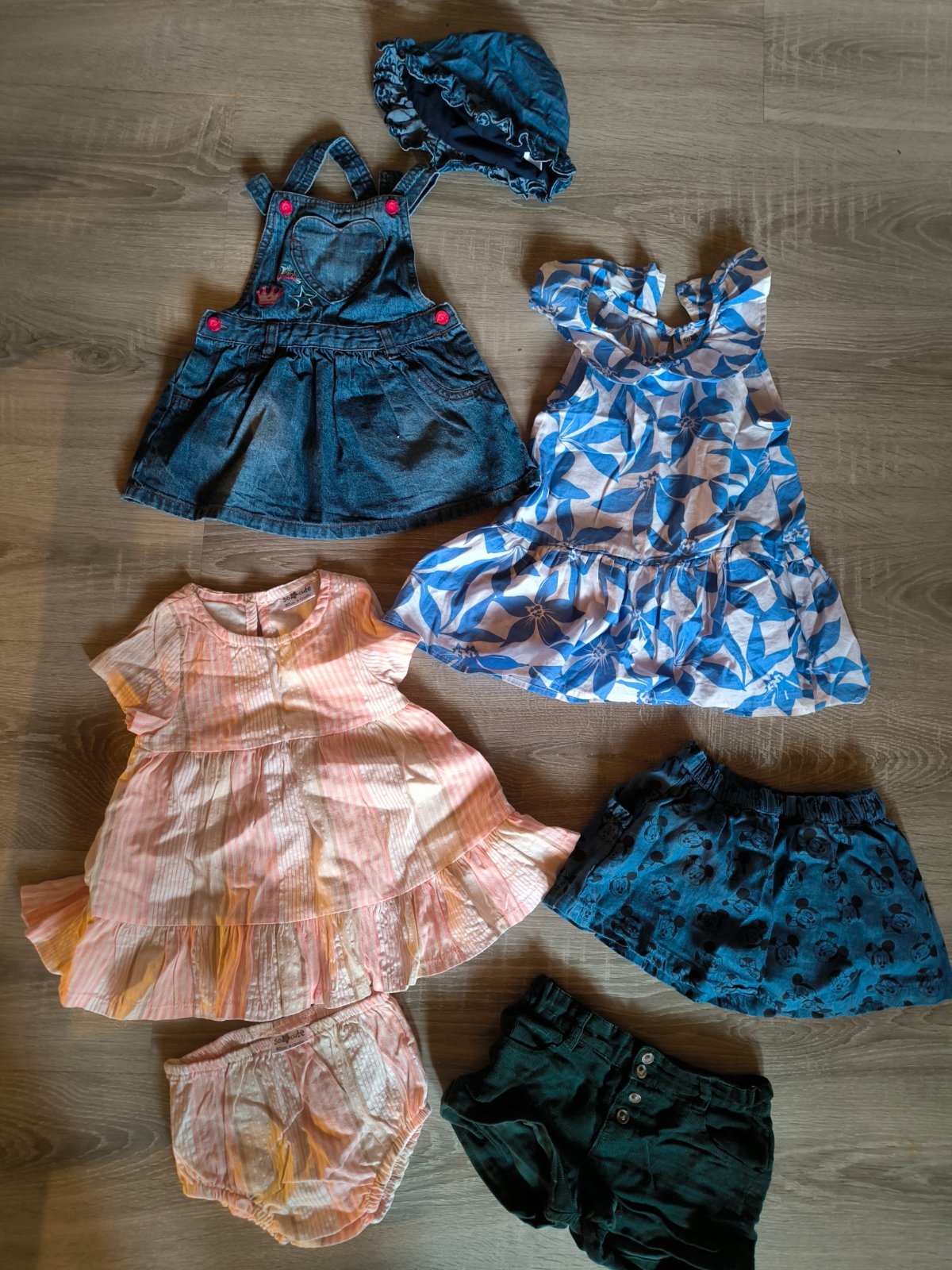ružové šaty Sinsay 68 veľkosť 3€ kvietkave šaty F&F 3-6 mesiacov 3€ tričko Lupilu 62/68 veľkosť 3€ tepláky Koala baby 68 veľkosť 3€ legínky Disney 68 veľkosť 2€ alebo spolu 12€ všetko ako nové