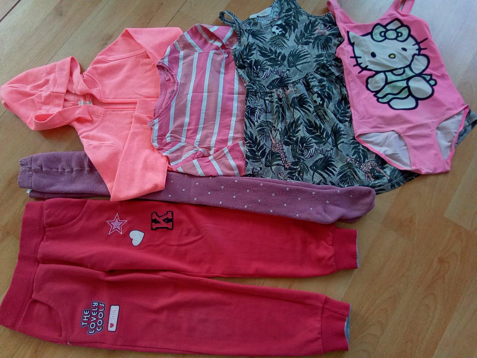 Tepláky c.122, pančuchy hrubé c.110/116, šaty c.110/116