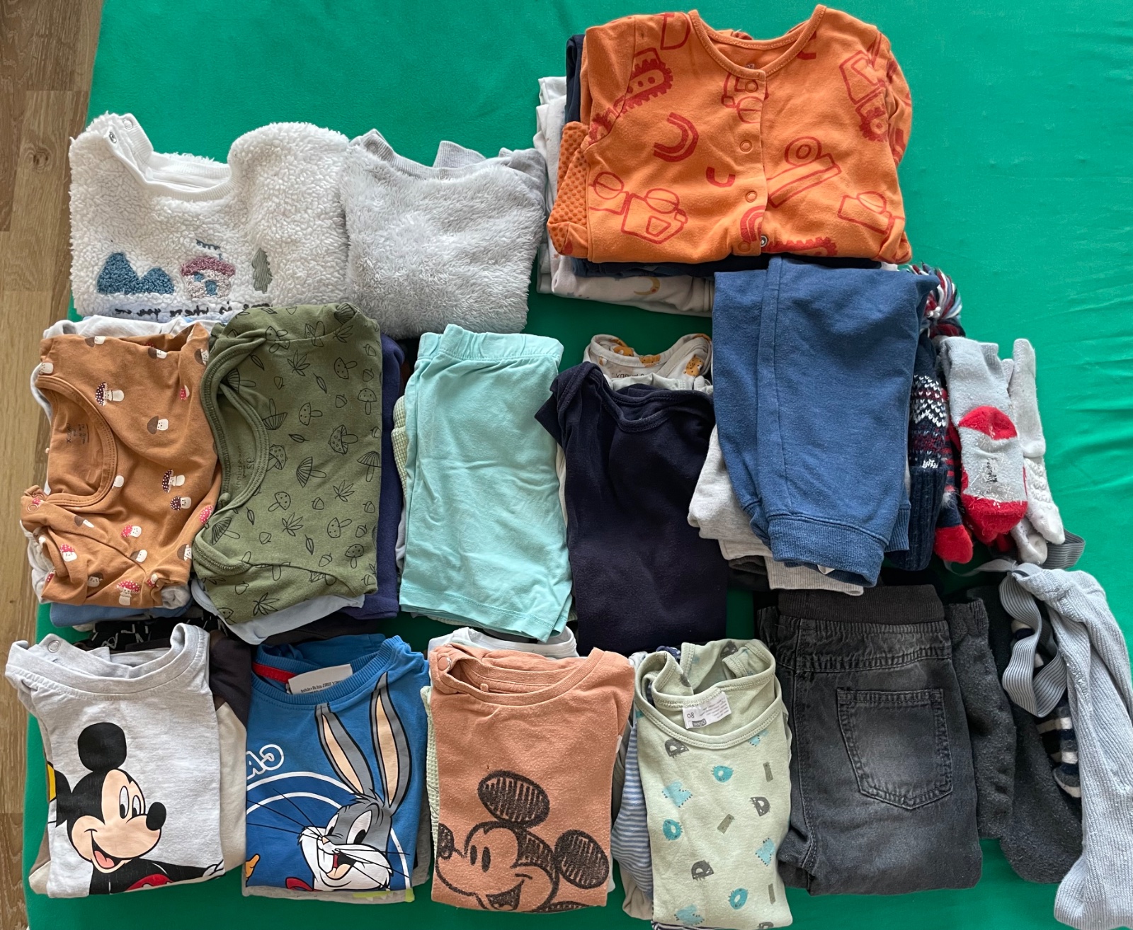 Balik obsahu pyžamka, svwtriky, kratase, trička s dlhym aj s kratkym rukavom, body s dlhym aj s kratkym rukavom, teplaky, tielka, pomožky, pančuchy. Velkosti od 86 do 98. Okolo 80 kusov oblečenia.