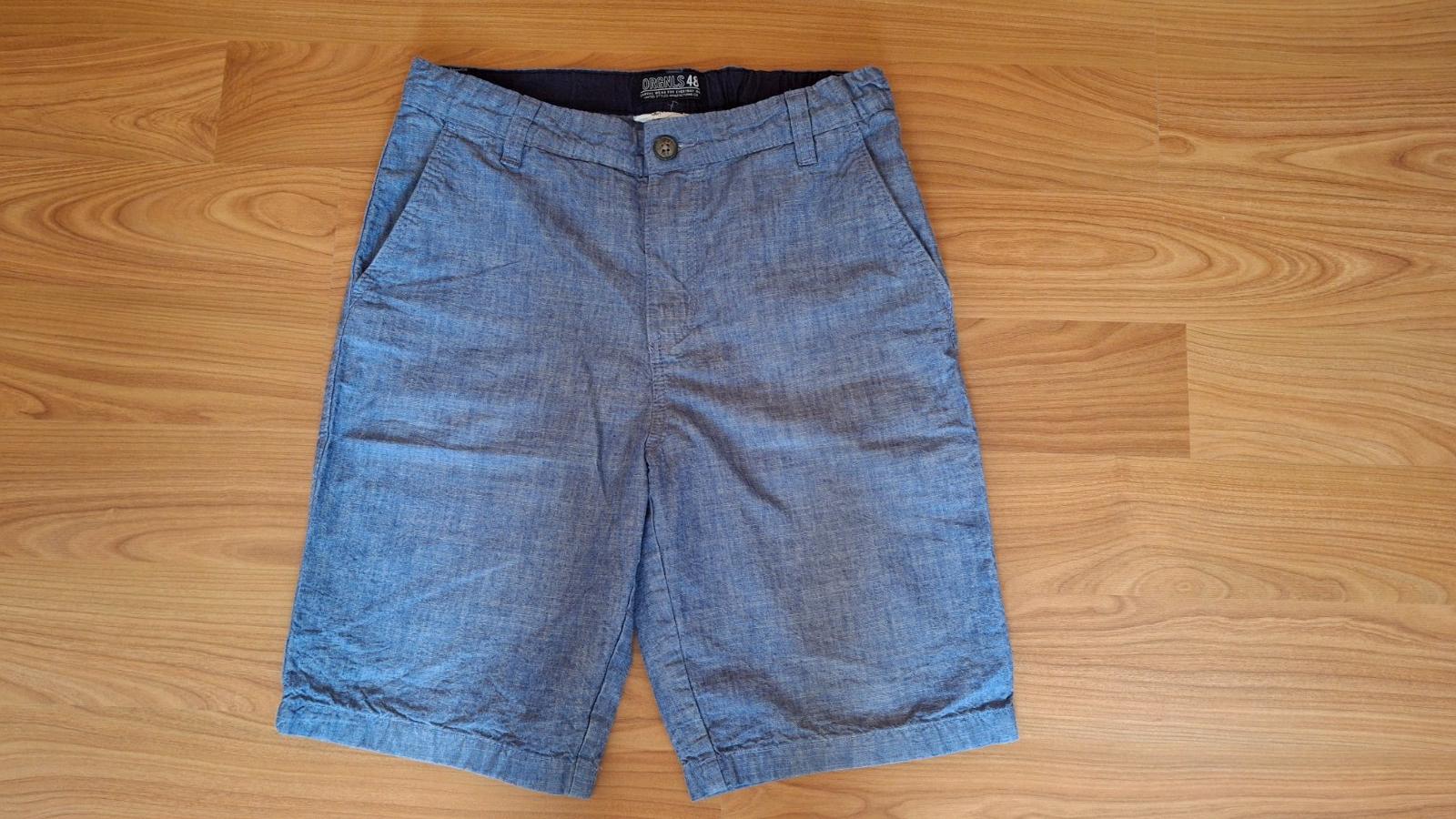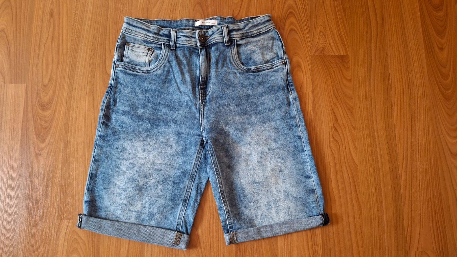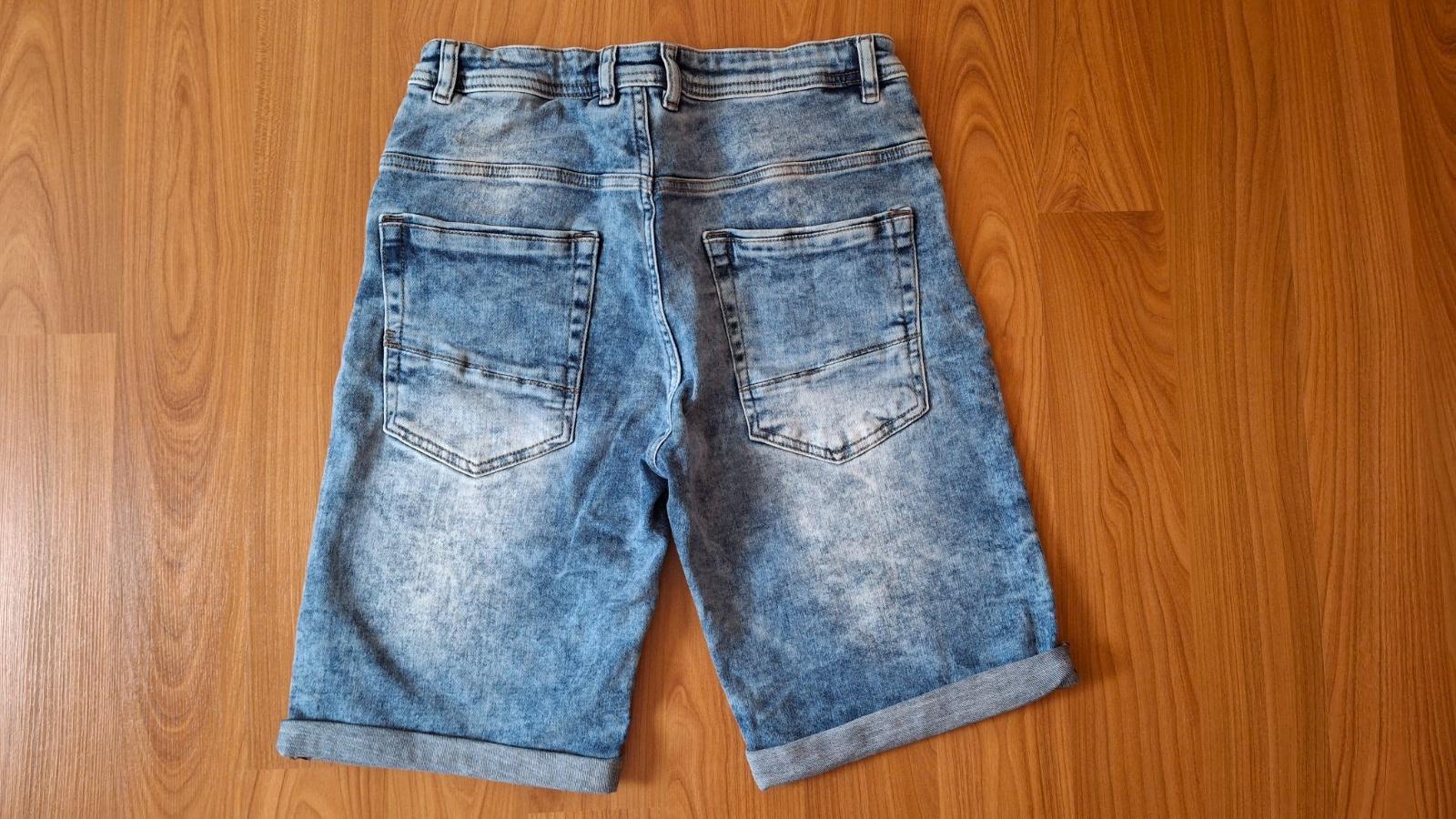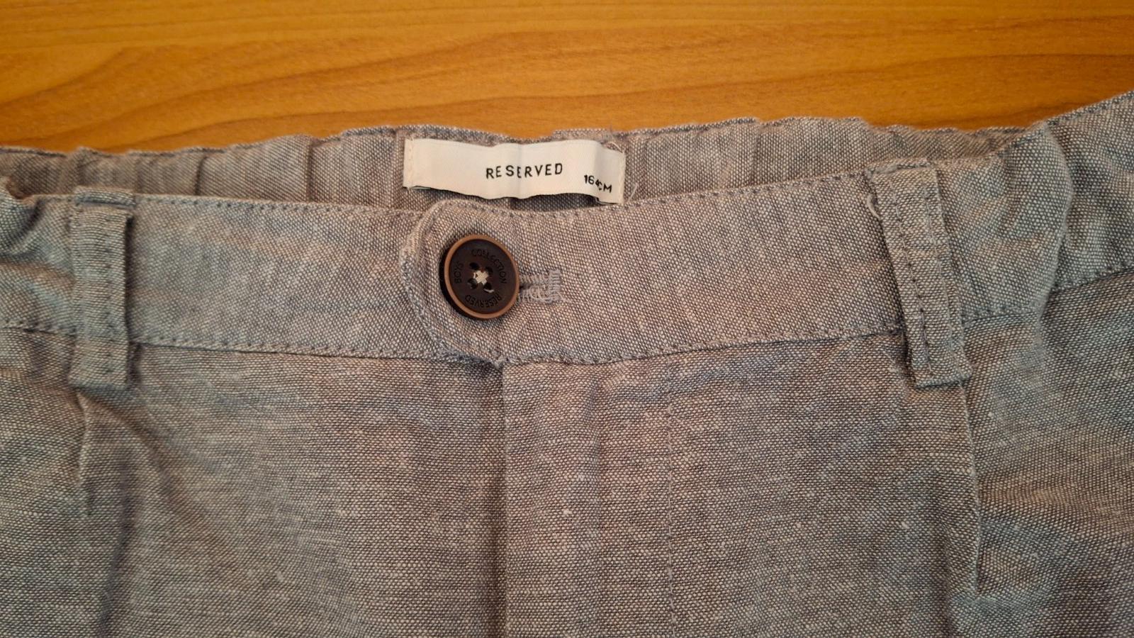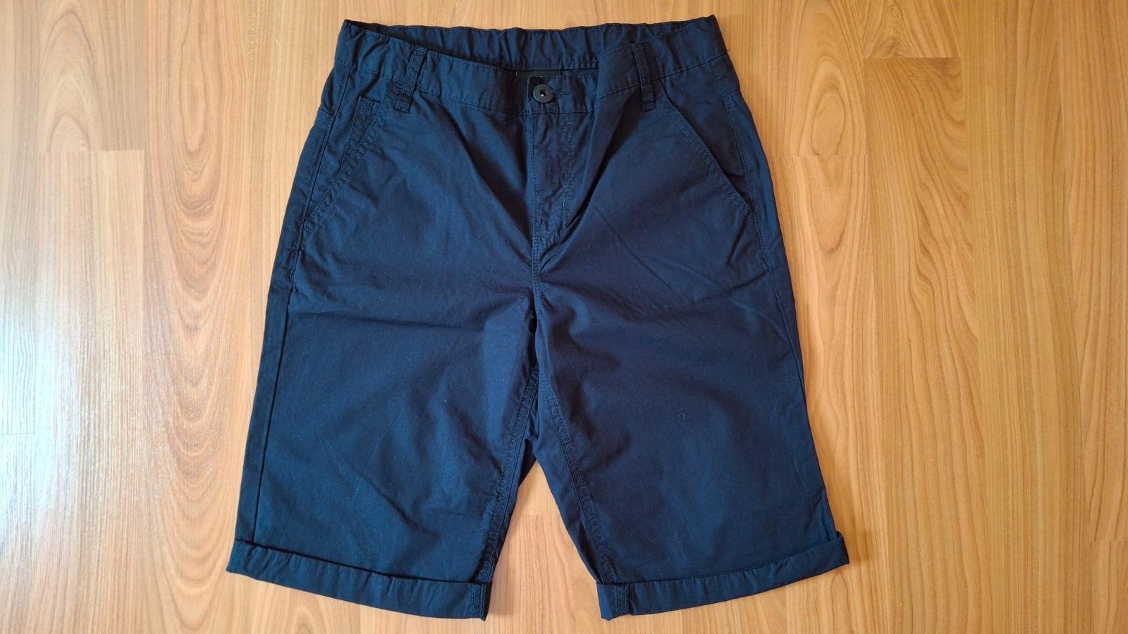 Rifľové kraťase zn. Reserved nenosené, čierne kraťase zn. C&A nenosené, bledomodré kraťase zn. H&M málo nosené - výborný stav, svetlošedé kráťase zn. Reserved málo nosené - výborný stav. Všetky kraťase majú nastaviteľný pás na gumičku s gombíkom. A tričko zn. Reserved veľ. 164 Looney Tunes - pekný stav, nemá žiadne poškodenia - je grátis. Cena spolu 22 eur.