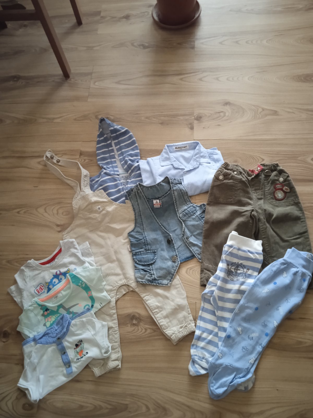 Predám vo veľmi dobrom stave chlapčenské oblečenie veľkosť 74-80, tepláky veľkosť 92, červené papuče (výborný stav) veľkosť 23. Cena spolu s poštovným je 10,-eur.