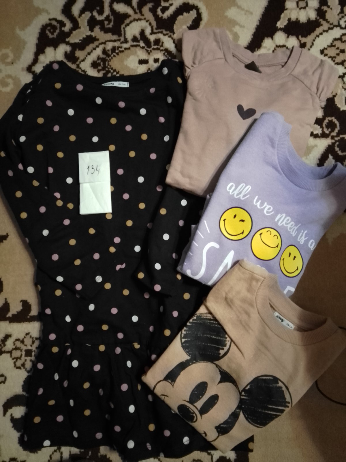 Šaty s dlhým rukávom, 2 mikiny, béžové tričko s dlhými rukávmi. Predaj možný aj jednotlivo.