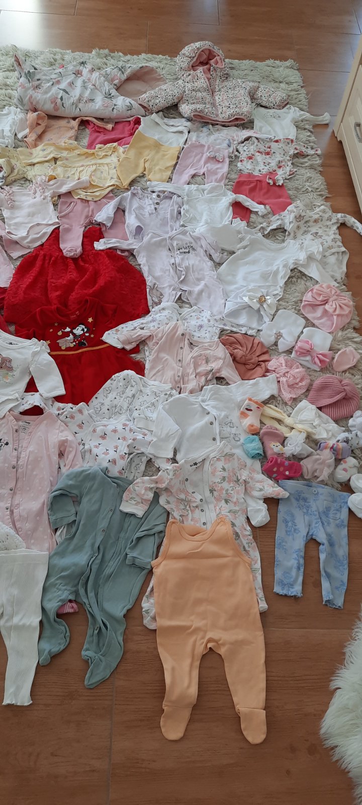 Predám veľký balík oblečenie po dcérke.Veľkosť od narodenia po 74.Šatky,pyžamá, body dlhý rukáv,bunda,zavinovačka, čapice, čelenky, ponožky, svetríky,legíny...