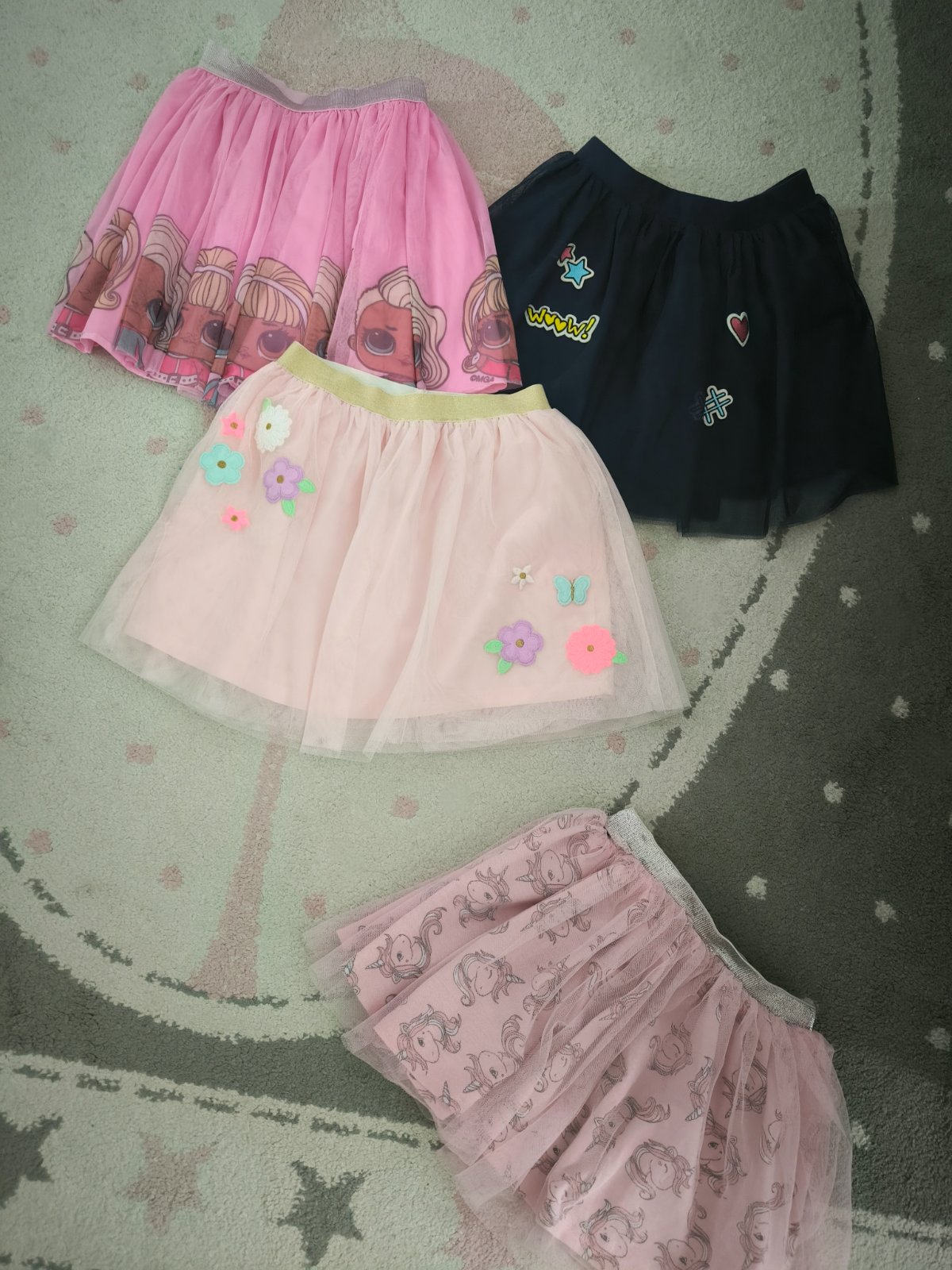 Uplne nove Zelene H&M, 8€ Modre Mickey Mouse 10€ Zlte sinsay 5€ Rifle a jednorozcom mam 2 velkosti, 138 a 140,kus 5€ Ruzove jednorozec lupilu 122/128,5€ Tmavoruzove HM,5€ Teplaky Sinsay 3€ Spolu: 43€