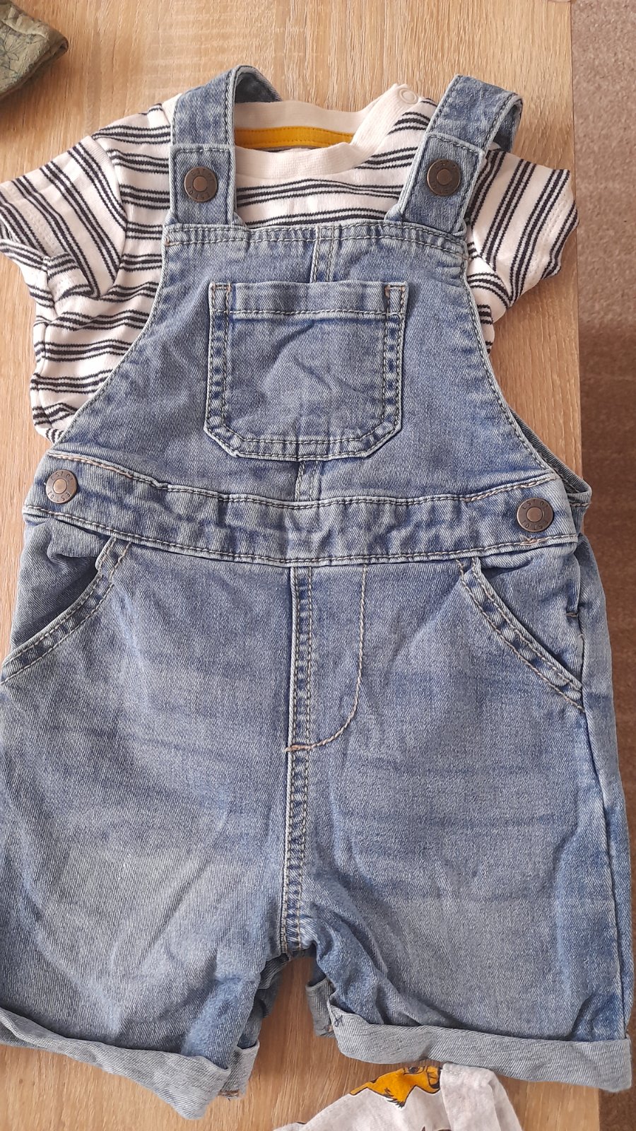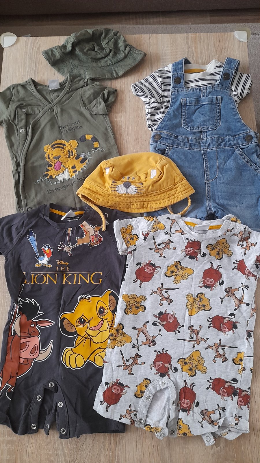 Všetko veľmi pekný stav, značka F&F,v. 6 - 9mesiacov. Obsahuje overaly, klobúčiky a jednu súpravu body s rifľovými kraťaskami.