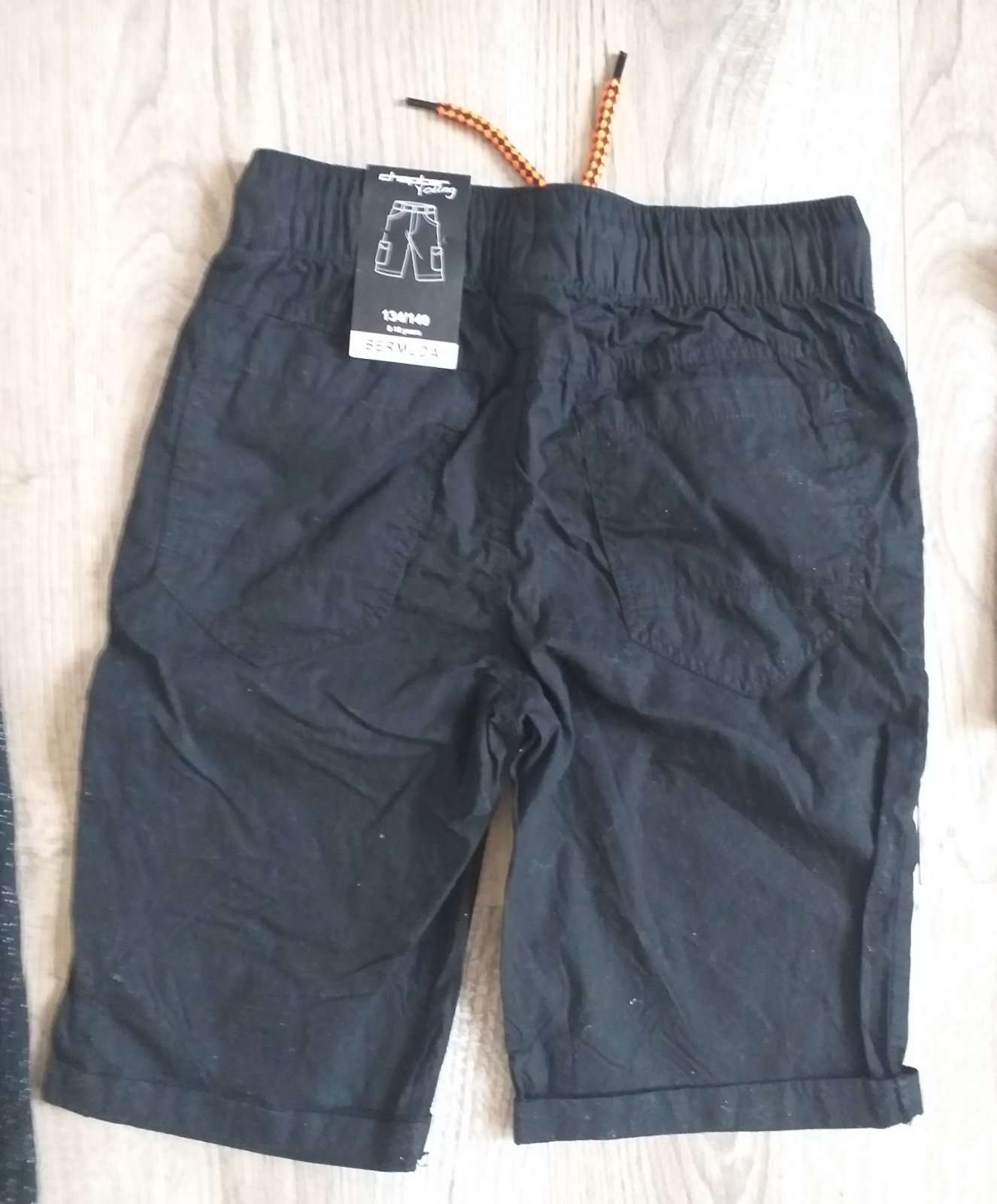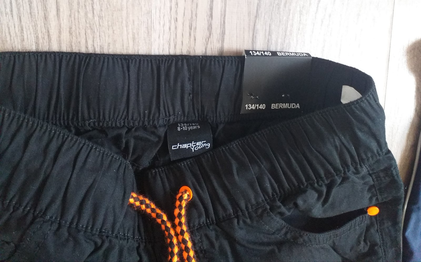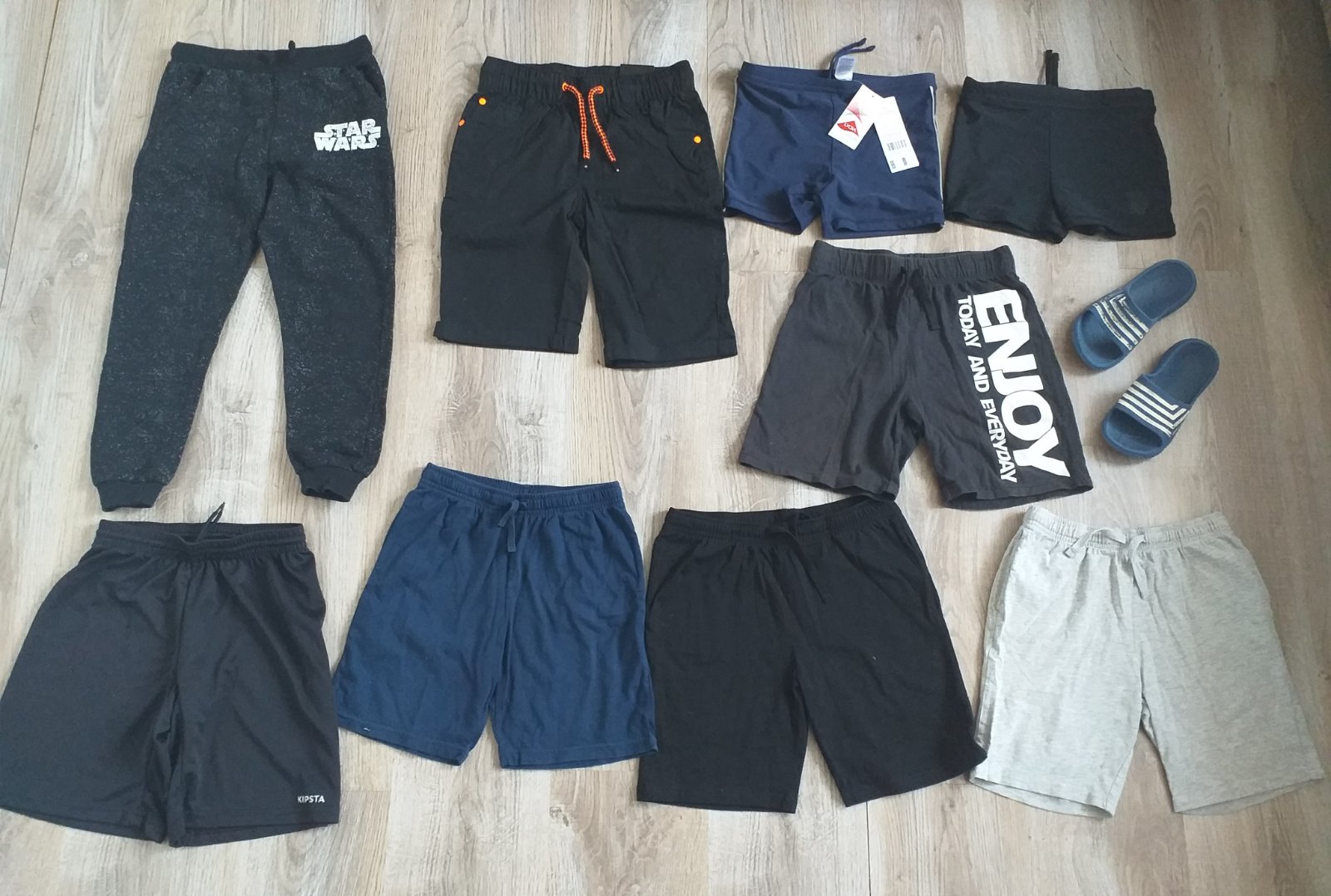 Nové bermudy FandF 134/140, nenosené, ešte so štítkom. Miery: pás 2x31cm, natiahne sa na 2x34cm, dĺžka 46cm, cena 5 eur. Plavky Fand 134, 8-9 rokov, v páse šnúrka, modré nové, ešte s visačkou, 3 eur, čierne párkrát oblečené, bez chybičky, pás 30-34 cm, dĺžka 25cm, 2 eur. Krátke bavlnené nohavice, HM 134, oblečené len párkrát, v 100% stave, v páse šnúrka, bočné vrecká, po 3 eur za kus, všetky 4 kusy za 10 eur. Čierne futbalové KIPSTA krátke nohavice, tenké, vzdušné, šnúrka v páse, oblečené asi dvakrát, majú iba odstrihnutý štítok s veľkosťou, inak ako nové, cena 3 eur. Čierne Star Wars zateplené tepláky, tiež oblečené len párkrát, štítok s veľkosťou odstrihnutý, 2 eur. Pri kúpe celého balíka cena 20 eur plus zdarma pridám šľapky veľkosť 32.