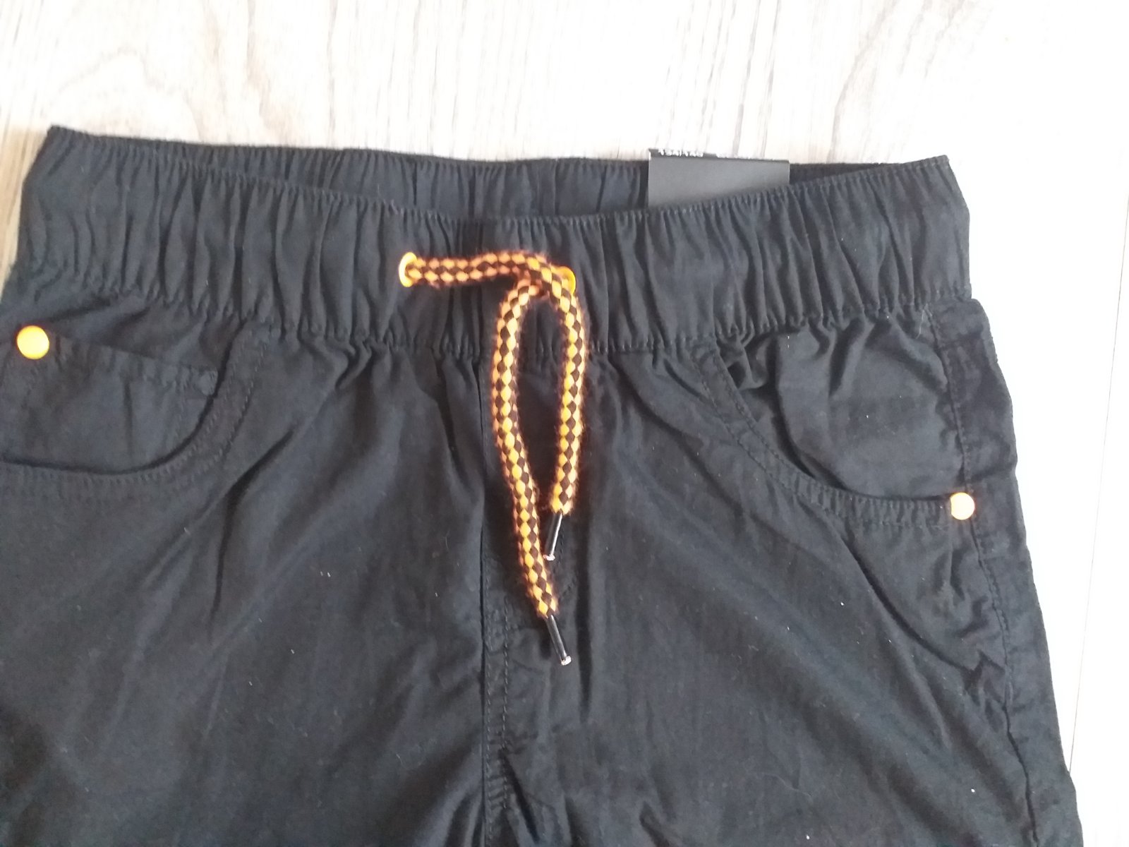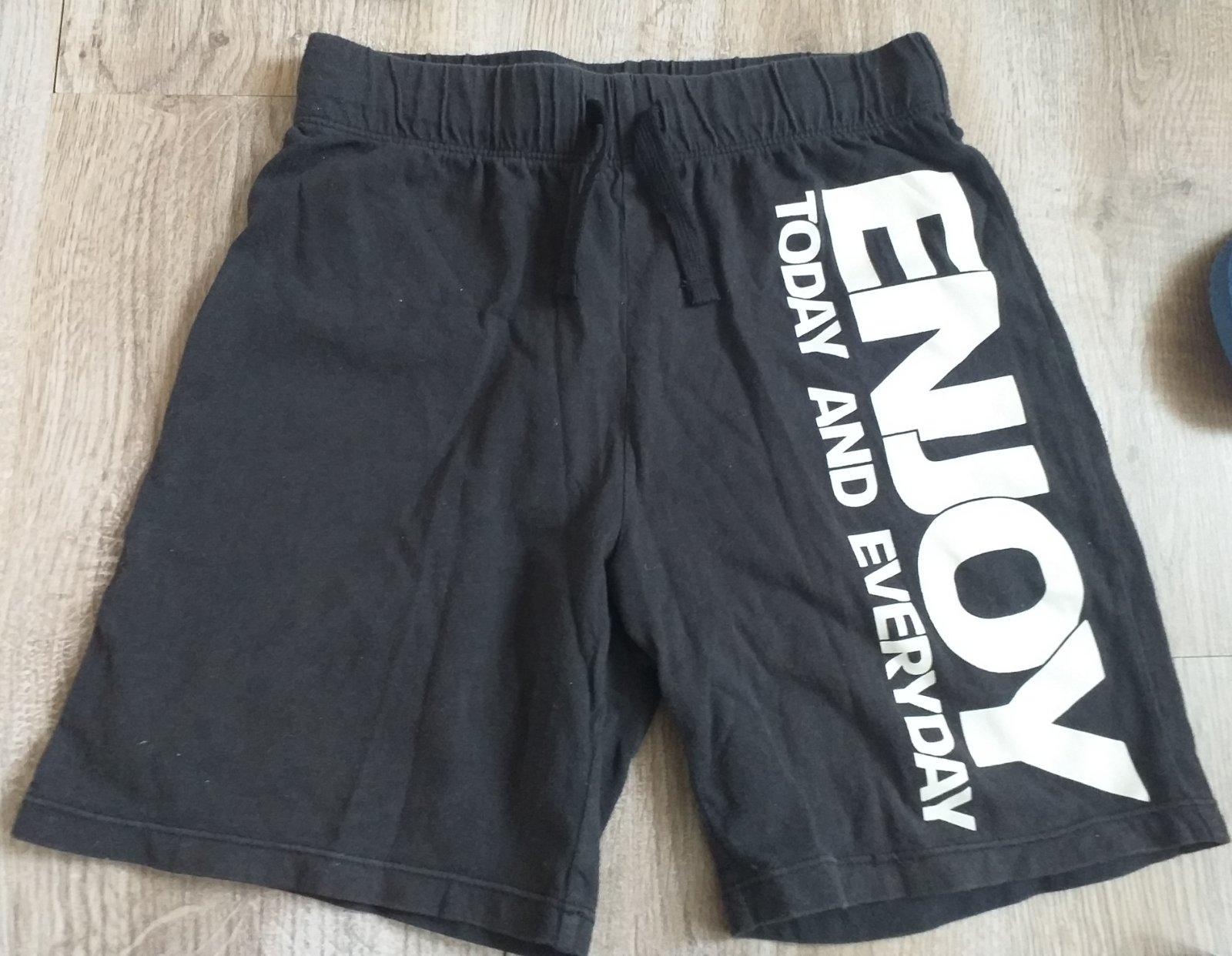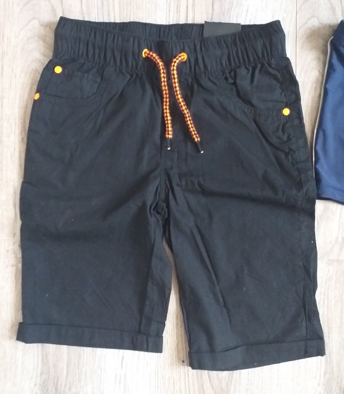 Nové bermudy FandF 134/140, nenosené, ešte so štítkom. Miery: pás 2x31cm, natiahne sa na 2x34cm, dĺžka 46cm, cena 5 eur. Plavky Fand 134, 8-9 rokov, v páse šnúrka, modré nové, ešte s visačkou, 3 eur, čierne párkrát oblečené, bez chybičky, pás 30-34 cm, dĺžka 25cm, 2 eur. Krátke bavlnené nohavice, HM 134, oblečené len párkrát, v 100% stave, v páse šnúrka, bočné vrecká, po 3 eur za kus, všetky 4 kusy za 10 eur. Čierne futbalové KIPSTA krátke nohavice, tenké, vzdušné, šnúrka v páse, oblečené asi dvakrát, majú iba odstrihnutý štítok s veľkosťou, inak ako nové, cena 3 eur. Čierne Star Wars zateplené tepláky, tiež oblečené len párkrát, štítok s veľkosťou odstrihnutý, 2 eur. Pri kúpe celého balíka cena 20 eur plus zdarma pridám šľapky veľkosť 32.