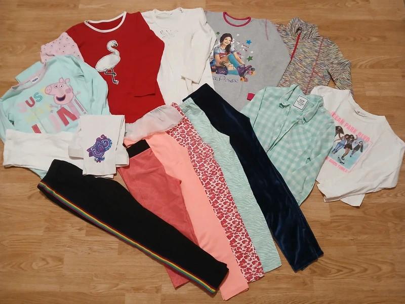 Dvoje naľavo F&F 7-8 r Ružové kúpili , písané 110/116,ale v pohode 122 Modré Shein 122 Cena za všetky