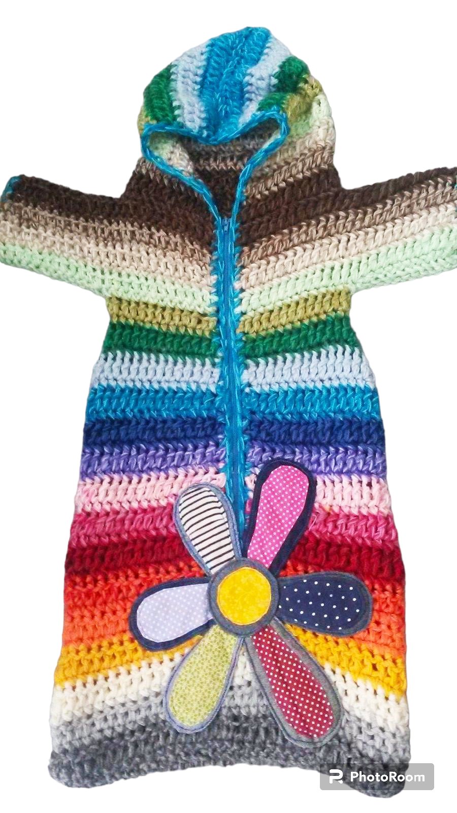 Krásny mnohofarebný fusak do kočíka pre bábätko do cca 1,5 roka. Zahreje a dieťatko sa v ňom cíti pohodlne ako v bavlnke. V