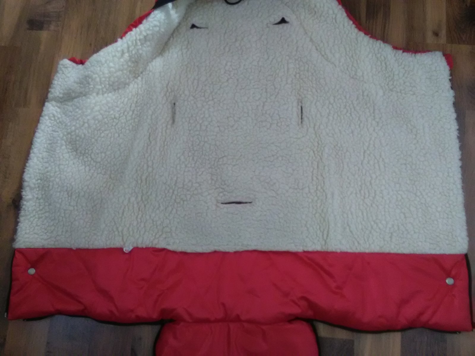 Fusak je vyrobený z impregnovaného materiálu, ktorý je odolný voči meniacim sa poveternostným podmienkam. Vnútro je ovčia vlna. Fusak má v strede zips a vo vnútri otvory na päťbodové bezpečnostné pásy. Hornú časť je možné stiahnuť a vytvroriť tak kapucňu, ktorá chráni hlavičku dieťatka.