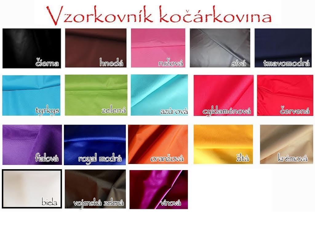 kočárkovina (100 % PES - certifikovaná pre deti do 3 rokov), nepremokavá a veľmi kvalitná látka;