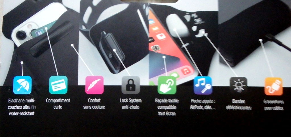 - Vrecko na suchý zips na uloženie smartfónu s priehradkou na kartu.