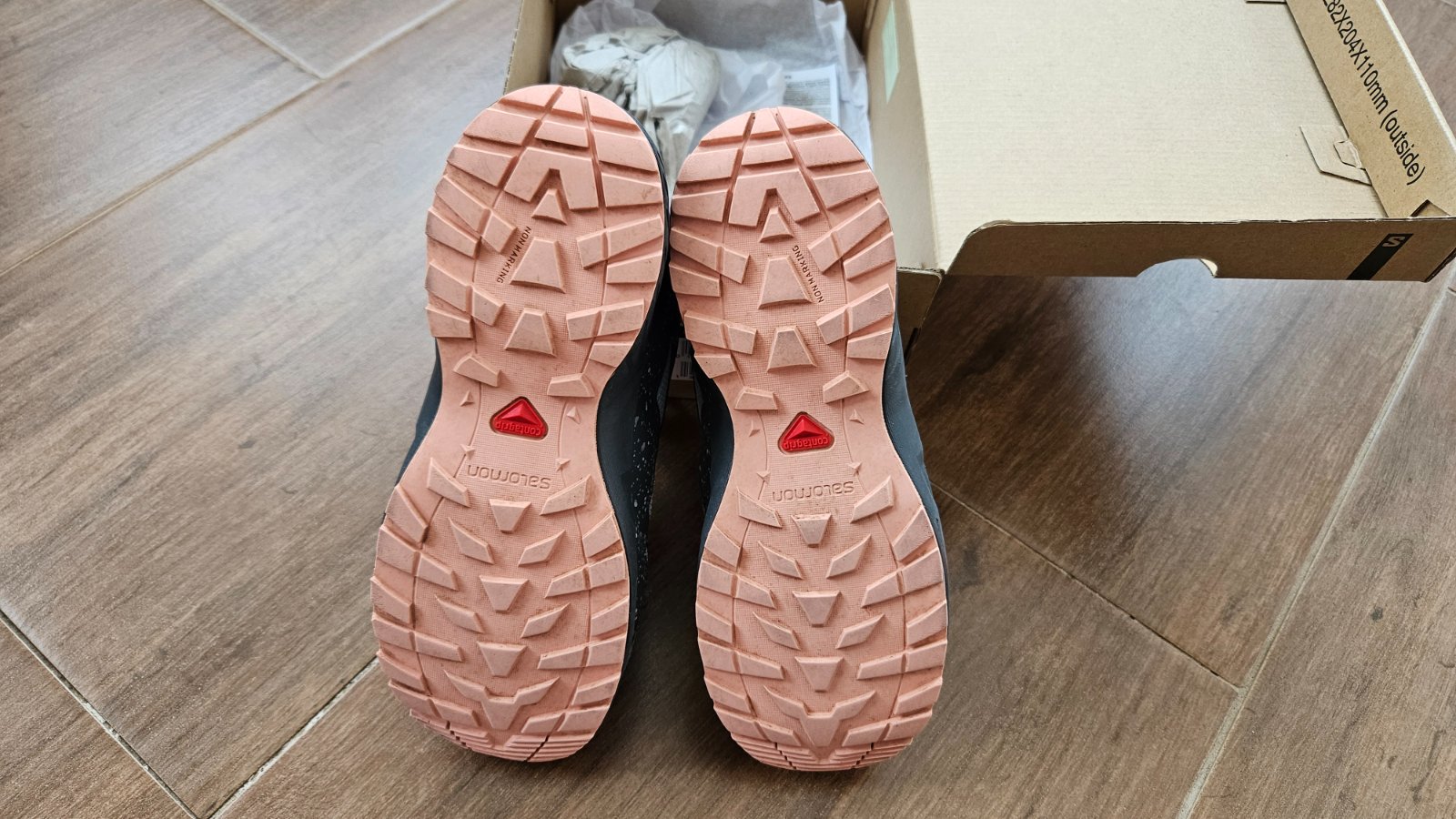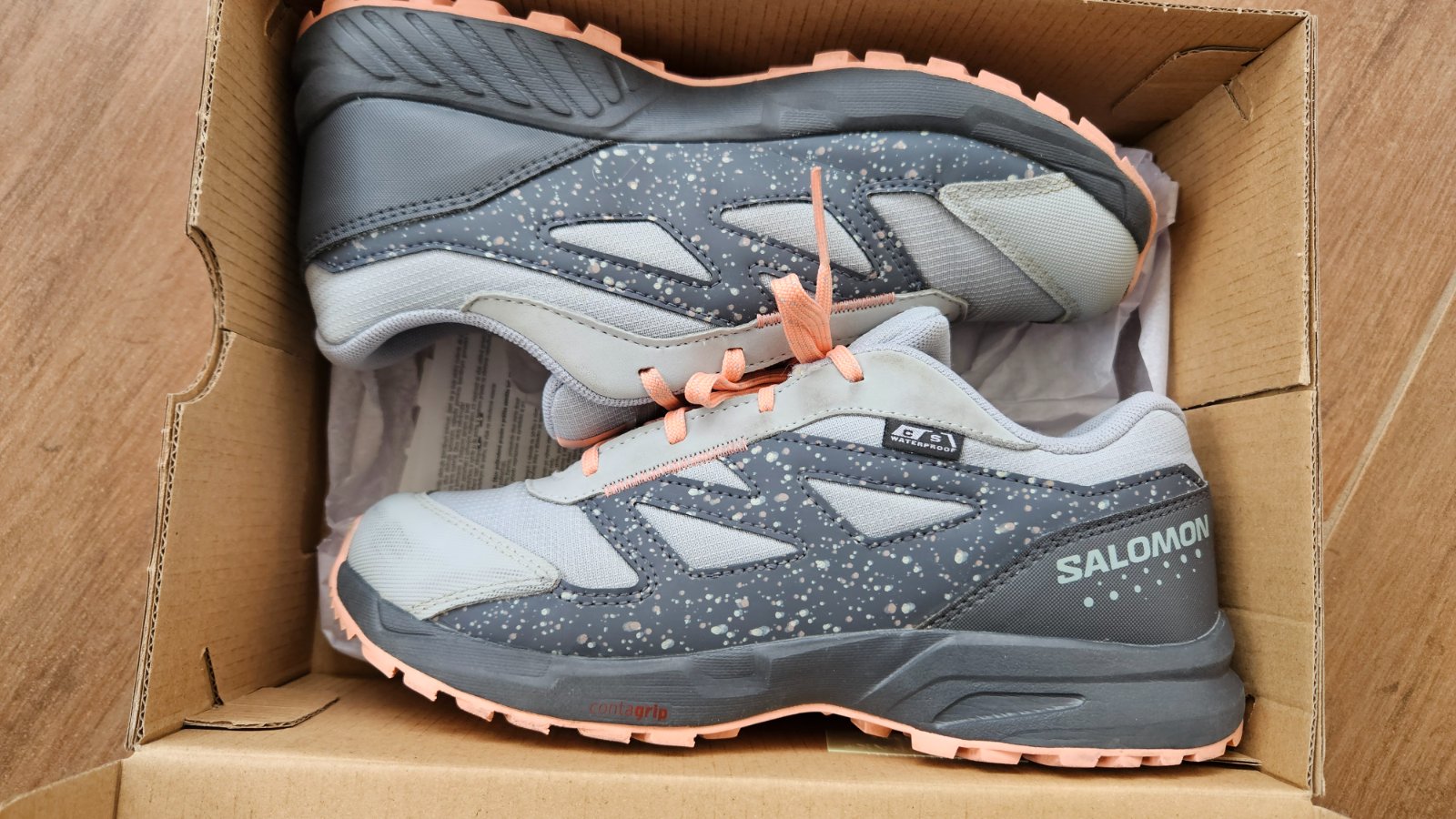 Značka: SALOMON Detská bežecká obuv OUTWAY CSWP JUNIOR quarry/ebony/peach amber - sivá