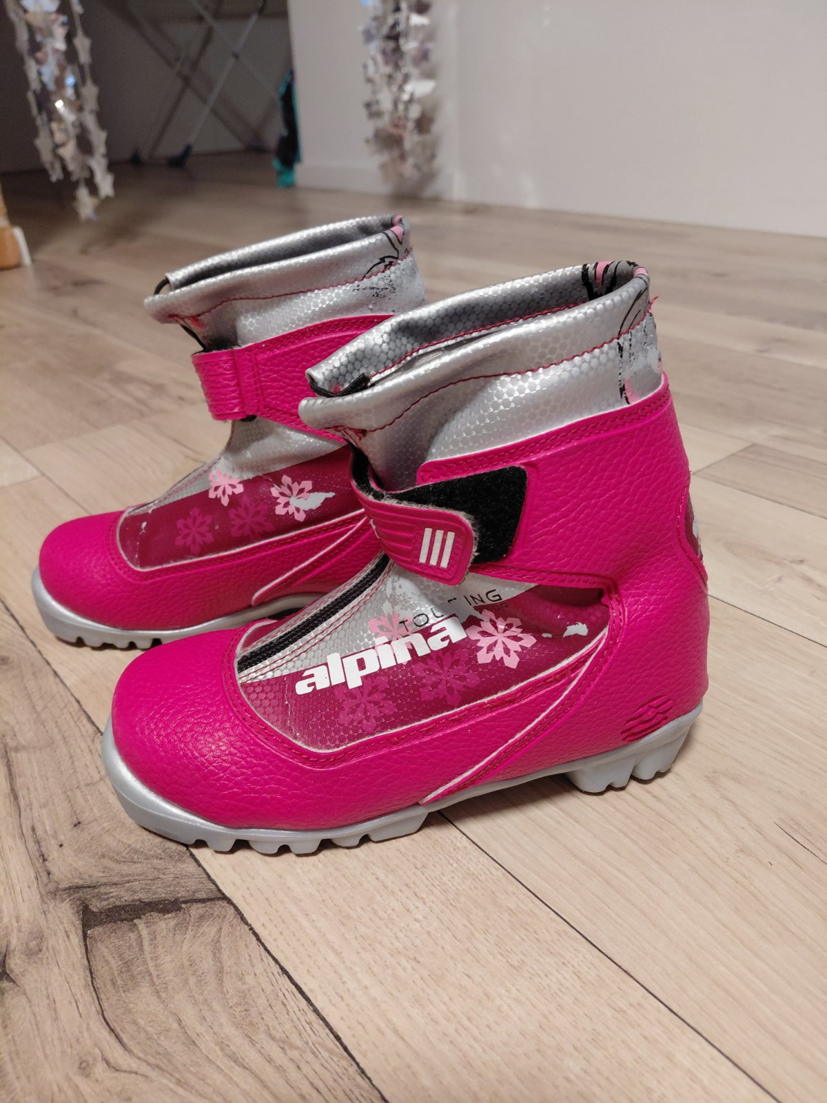 Detské bežkárske topánky Alpina touring na viazanie NNN, veľkosť 32. Topánky sú používané, používaním trochu ošúchané, no stále zachovalé v dobrom technickom stave a dajú sa v pohode používať. C...