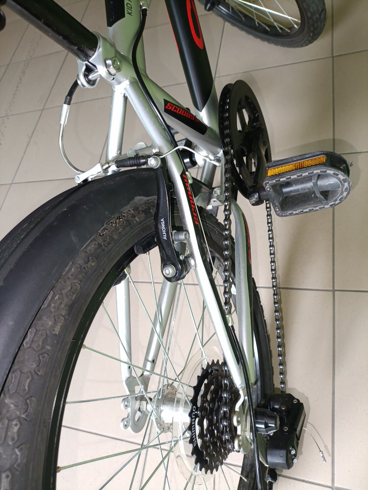 Používaný bicykel, vhodný pre väčšie dieťa (alebo aj nižšieho dospelého - do výšky 175cm), má sedem prevodov, priemer kolesa 66cm, dĺžka (od stredu jedného kolesa k druhému) 100cm, riadidlá má vo v...