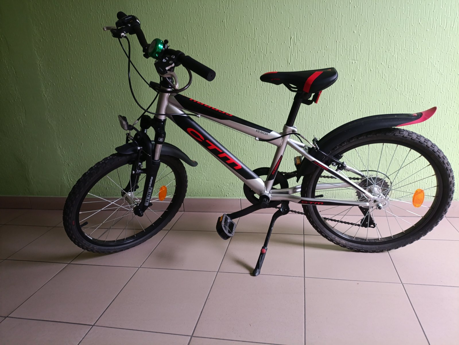 Má to stojan, pomocné kolieska, predný košík, blatníky a krásne vyzerajúce plasty na kolesách