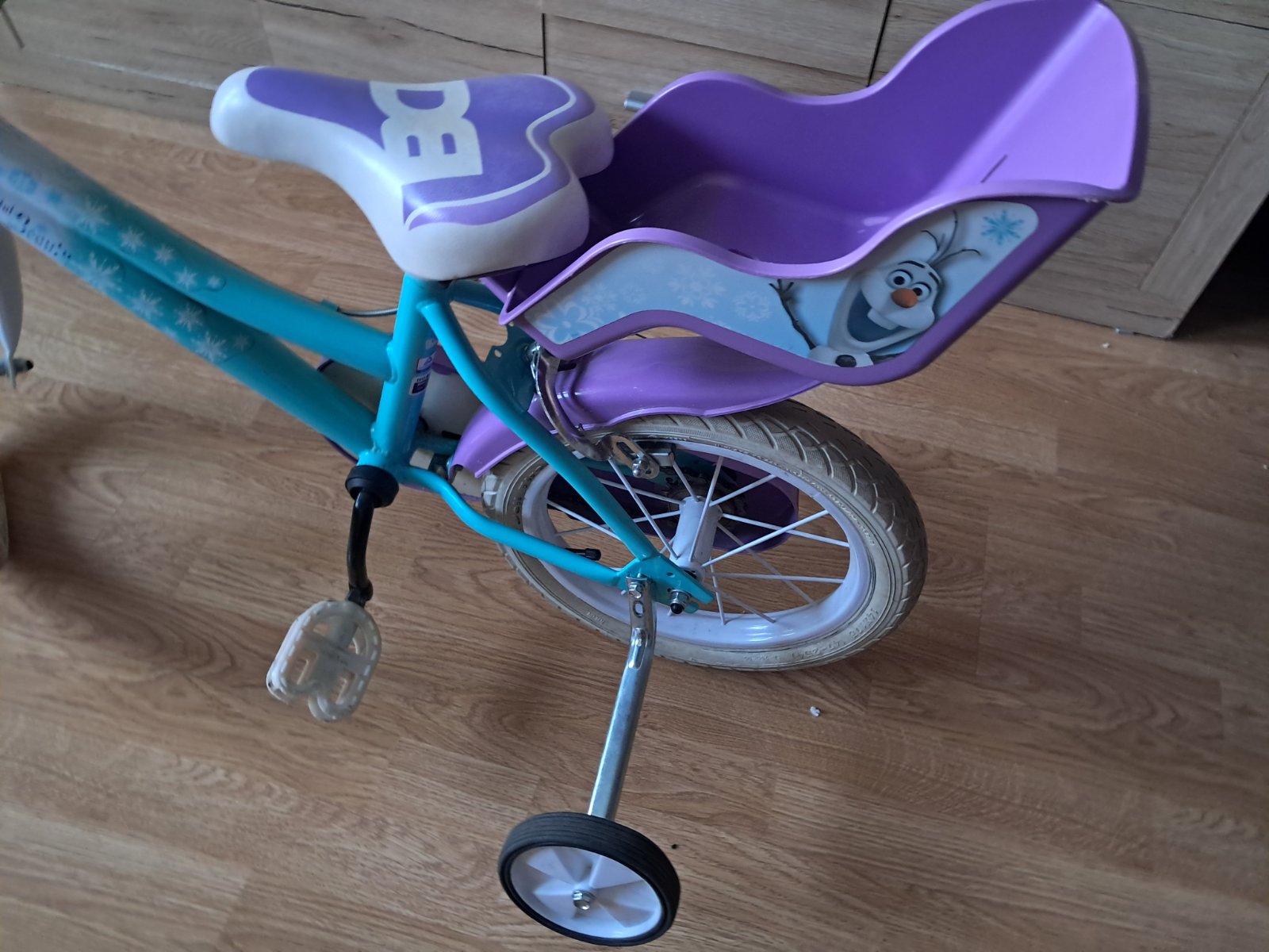 Jazdený bicyklík, na učenie perfektný, boli sme s ním veľmi spokojní, sú k memu aj pomocné kolieska, ú tam známky používania udretia, buchnutia, oškretia