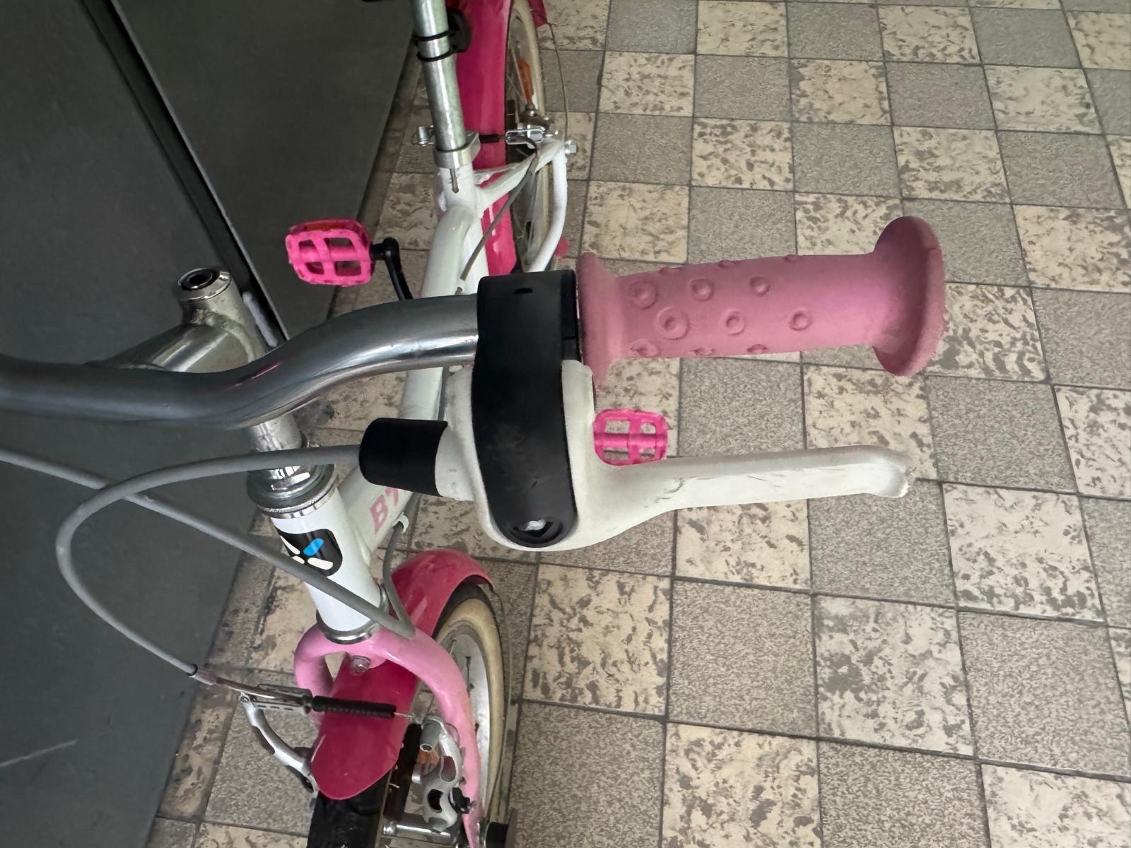 Používaný iba našou dcérkou v top stave krásnej ružovej farby (nedá sa pekne odfotit skutočnú farbu preto prikladám aj originál foto) +nové pomocné kolieska my sme nepotrebovali :)