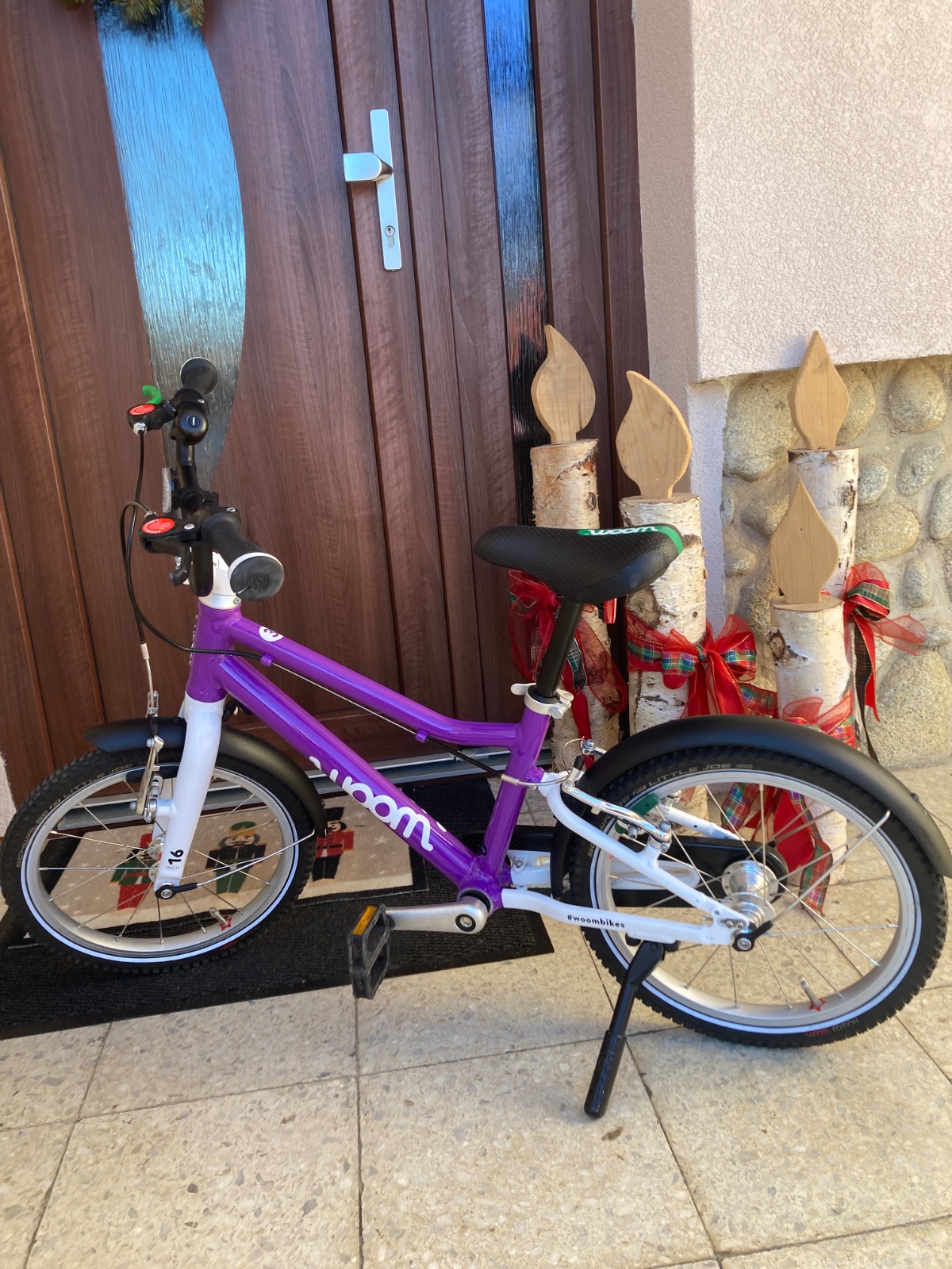 Ponukam na predaj Woom 3, kupovaný cez cyklospeciality, ešte v záruke do 24.04.2026. Kupovaný novy, používaný jedným dieťaťom. V perfektnom stave bez poškodení. Jedinu malu čiernu smuhu som našla na prednej vidlici, jej bielej časti nad číslom 16, vid foto. Výbavu bicykla tvoria: blatníky, zvonček a stojan. O cene nevyjednavam. Dobierkou neposielam. Iba osobny odber v 05918 Spišské Bystré.