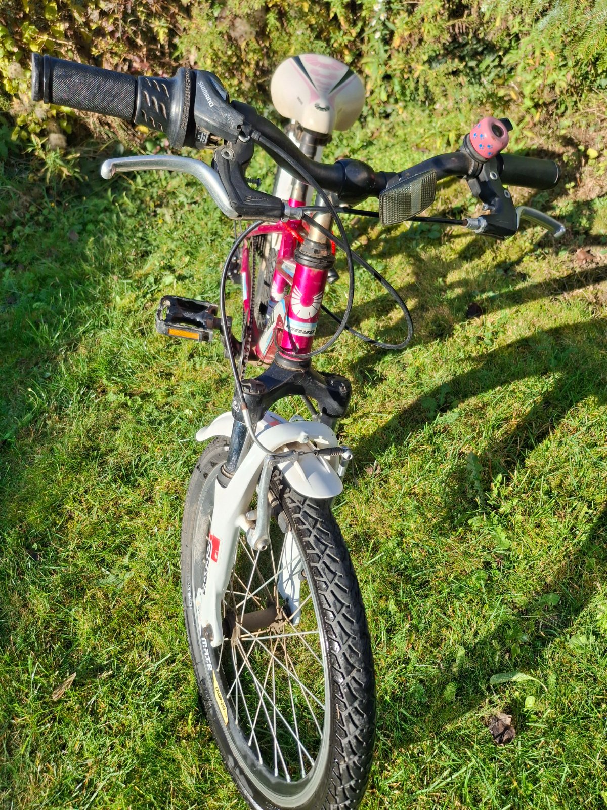 Predam odpruzeny dievcensky bicykel Mayo s prehadzovackou, blatnikmi a stojanom v zachovalom stave. Znamky opotrebovania vidiet na foto. Iba osobny odber - Zalesie, Ivanka pri Dunaji a blizke okolie.