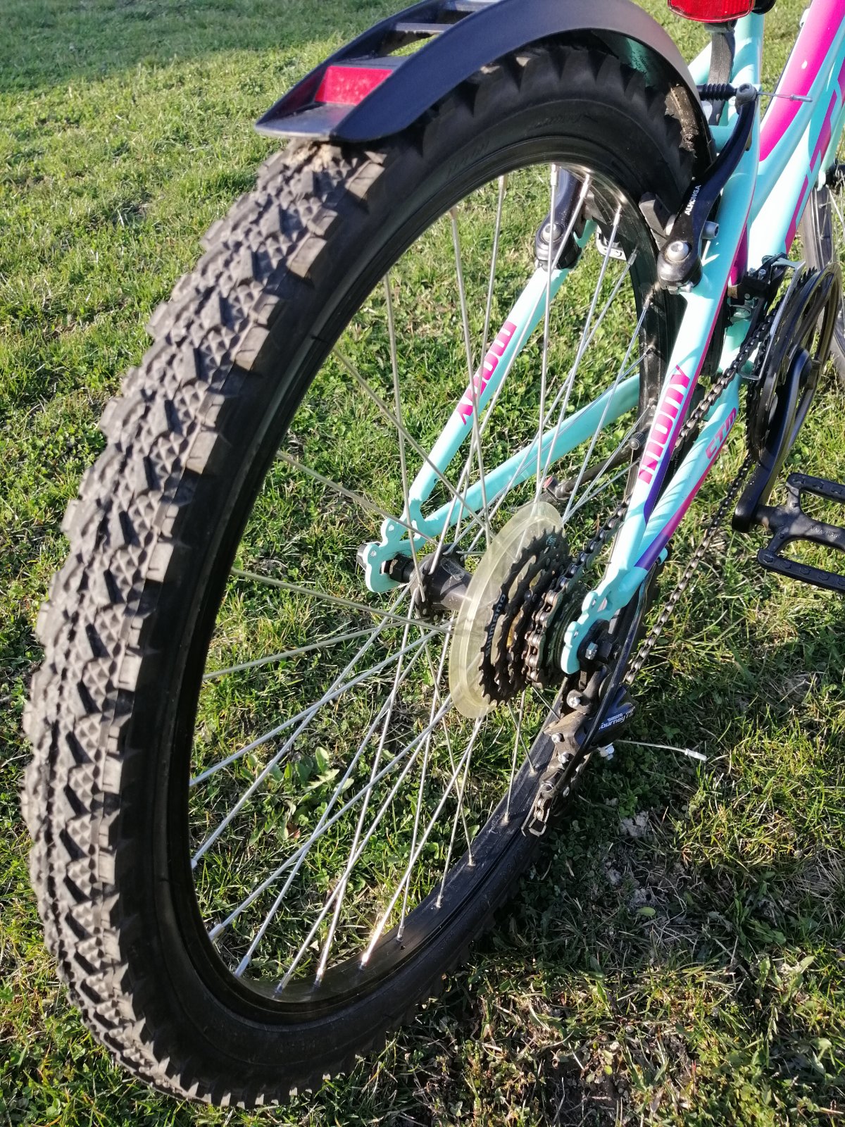 Predám detský bicykel CTM mony veľkosť 24", tyrkysovej farby, málo používaný, zachovalý. sedačka, plášte, brzdy, prehadzovačky všetko bez poškodenia.
